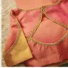 To maintain the beauty of your Peach Silk Maggam Work Blouse, we recommend dry cleaning only. Store it in a cool, dry place away from direct sunlight. Avoid contact with water to preserve the intricate embroidery.