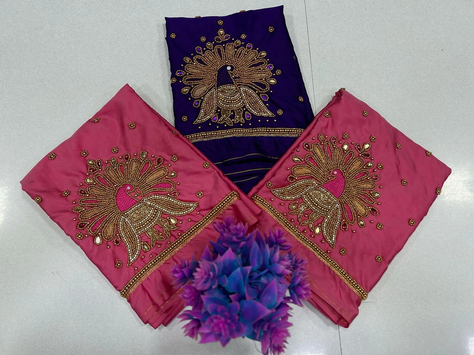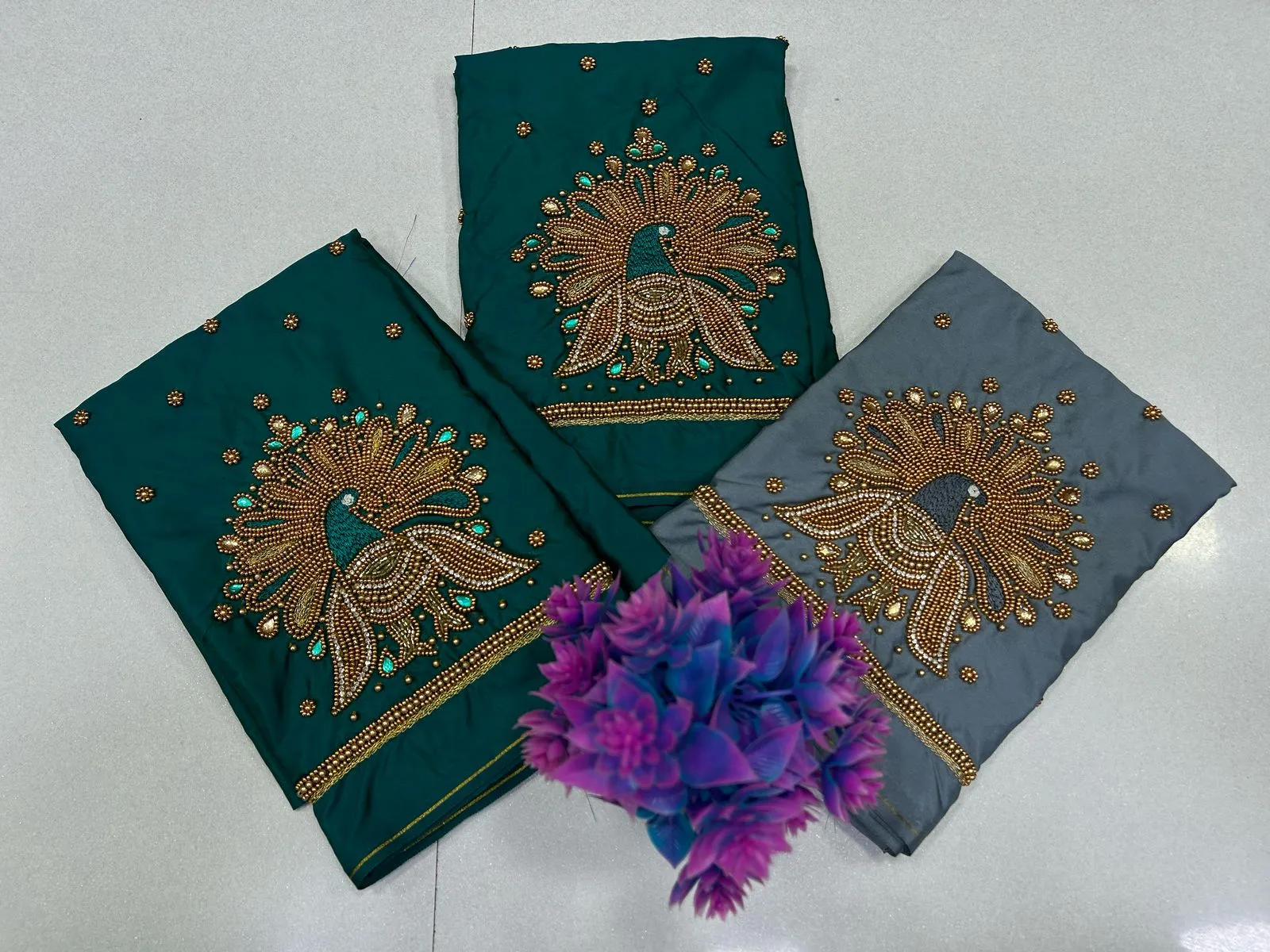 Work: Intricate Peacock Motif with Beads & Maggam Detailing