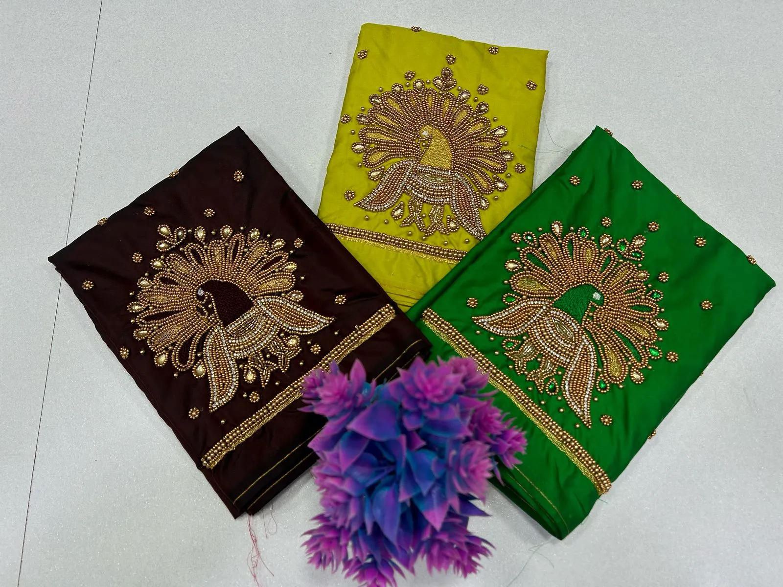 #PeacockWorkBlouse #MaggamWorkDesigns #SMBridalworks #HandcraftedBlouse #WeddingBlouseDesigns #TraditionalGlamour #DesignerEthnicWear #BeadedBlouse #PeacockEmbroidery #IndianWeddingLook