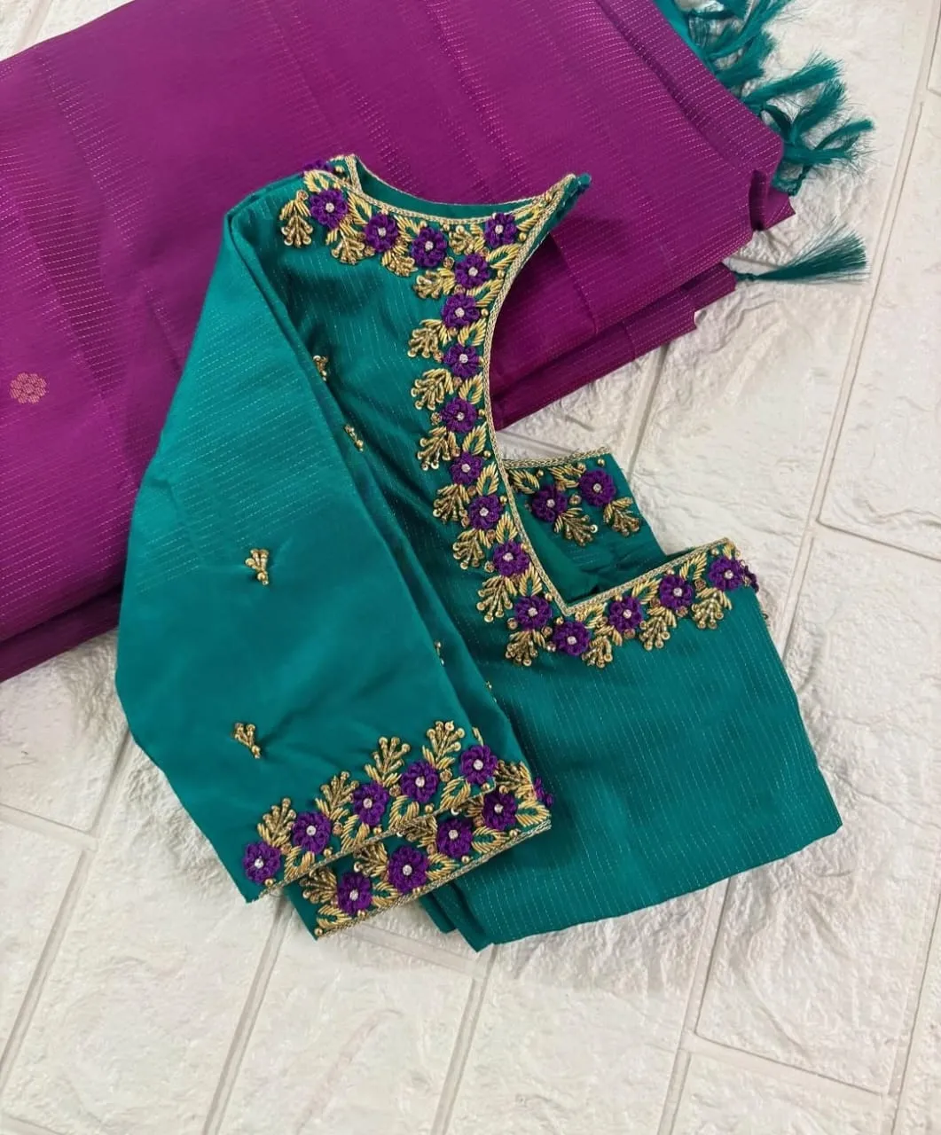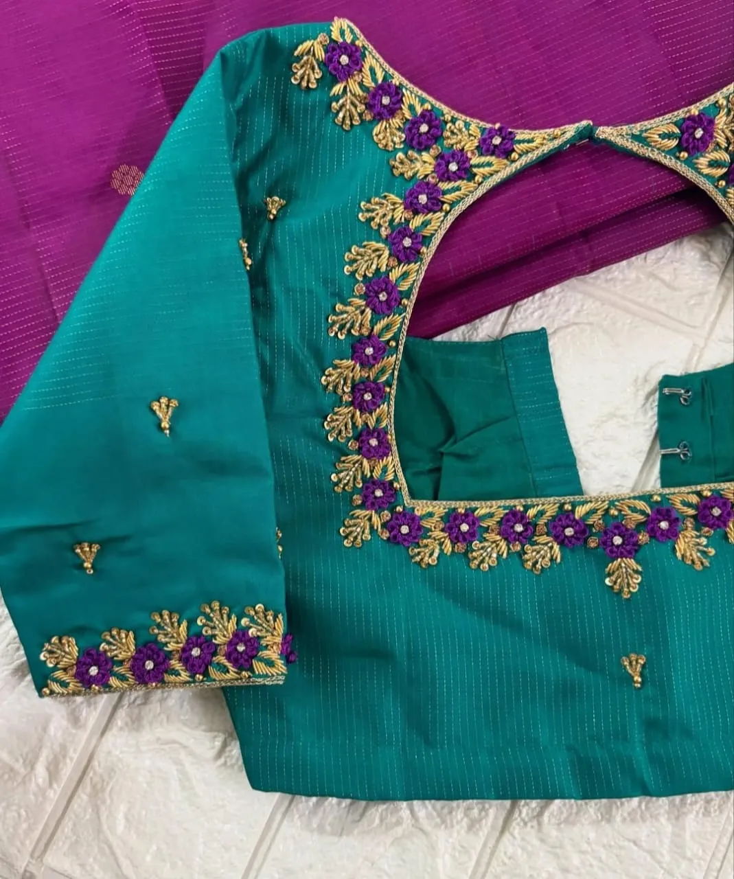 Peacock Blue Grand Maggam Blouse for Weddings Luxury Bridal Wear