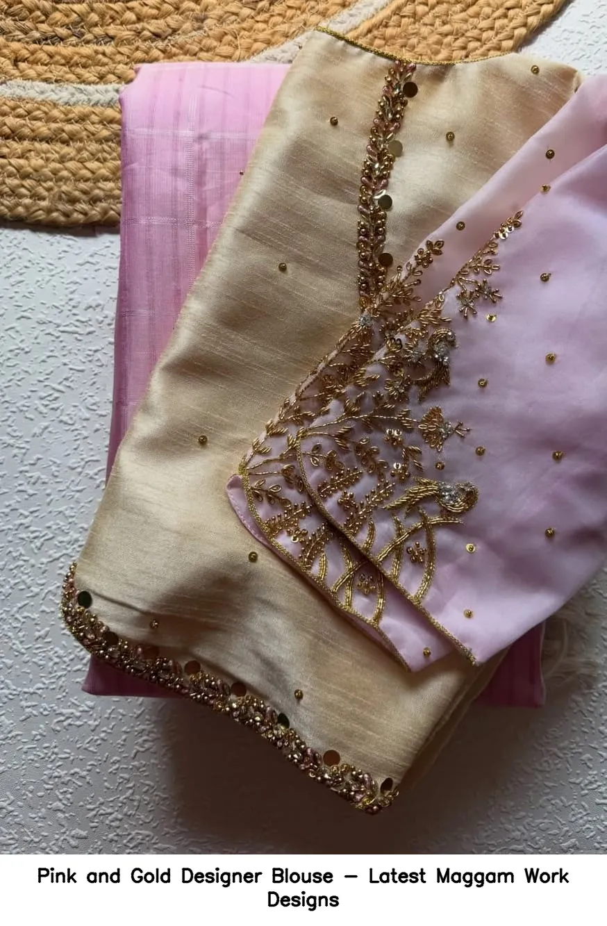 Pink and Gold Designer Blouse – Latest Maggam Work Designs