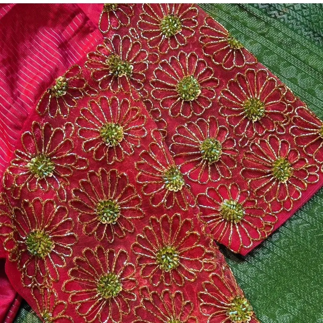 Perfectly tailored for elegant sarees and lehengas, the blouse showcases aari embroidery, zardosi elements, and detailed beaded craftsmanship, radiating regal elegance and a premium designer vibe.
