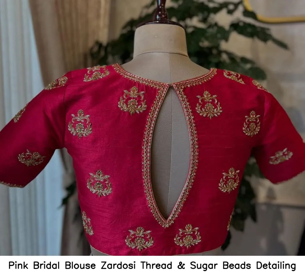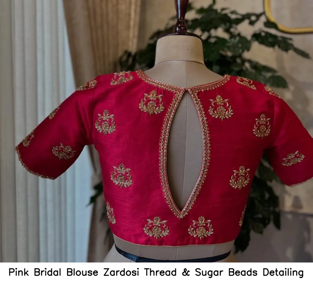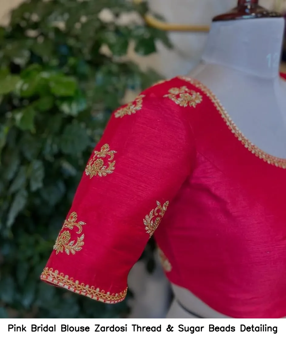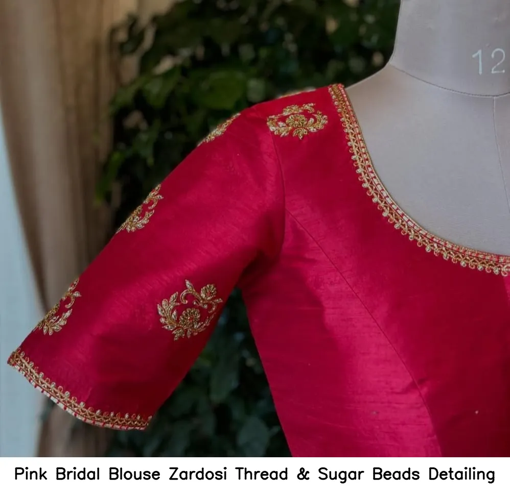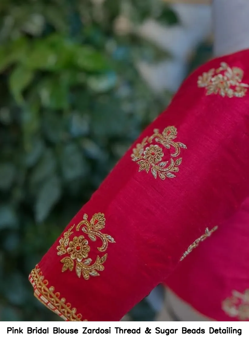 Why Choose Pink Bridal Blouse – Zardosi Thread & Sugar Beads Detailing?