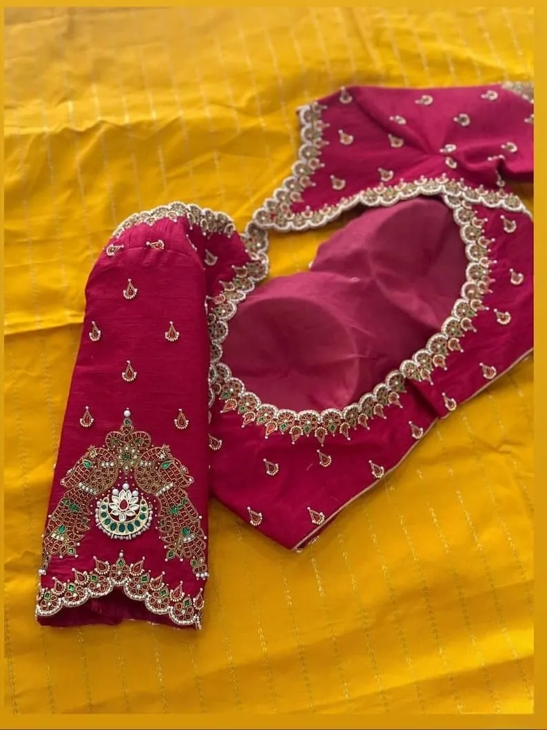 Pink Cutwork Kundan Maggam Work Blouse BudgetFriendly Classy Designer Wear