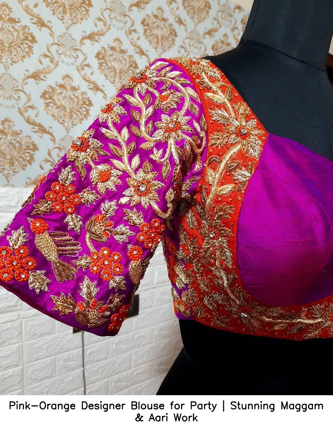 Why Choose Pink-Orange Designer Blouse for Party | Stunning Maggam & Aari Work?