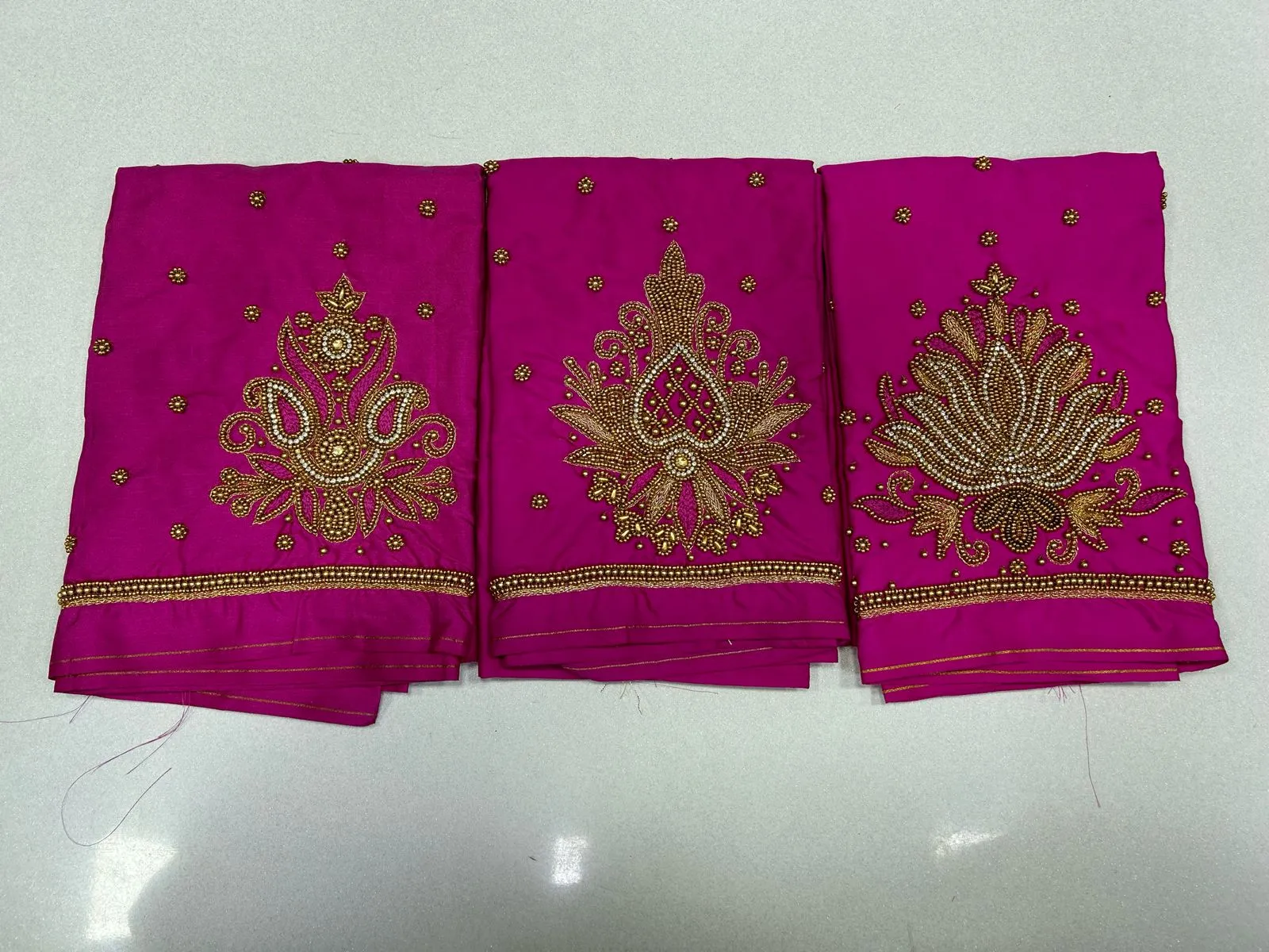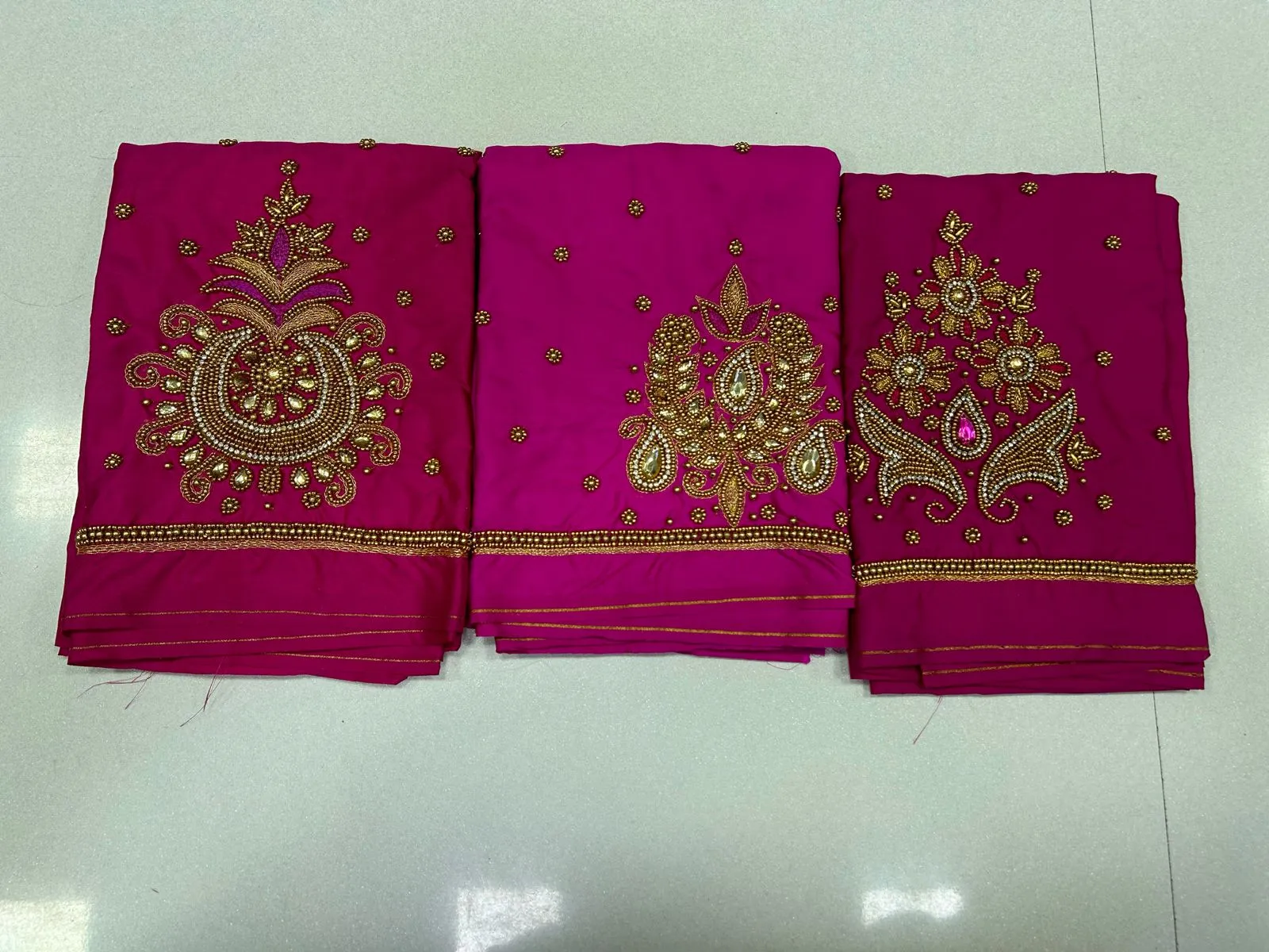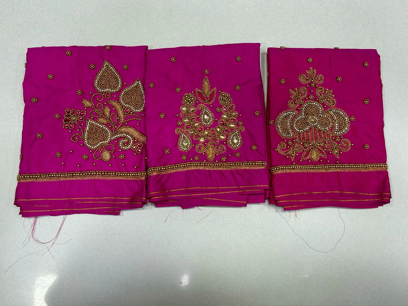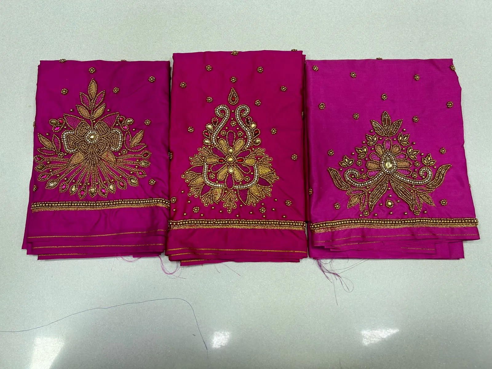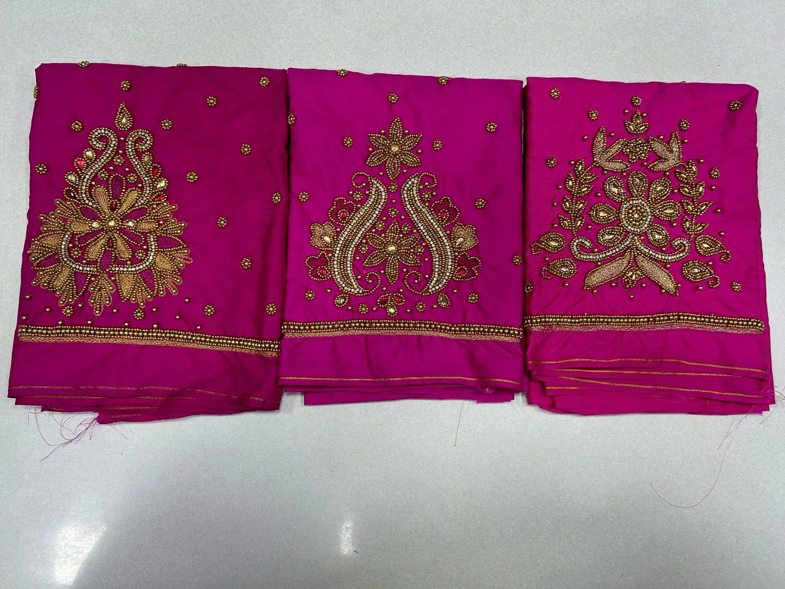 Stunning Pink Raw Silk with Butti Work blouse. Crafted for wedding and festive wear, pairs beautifully with silk sarees and lehengas.