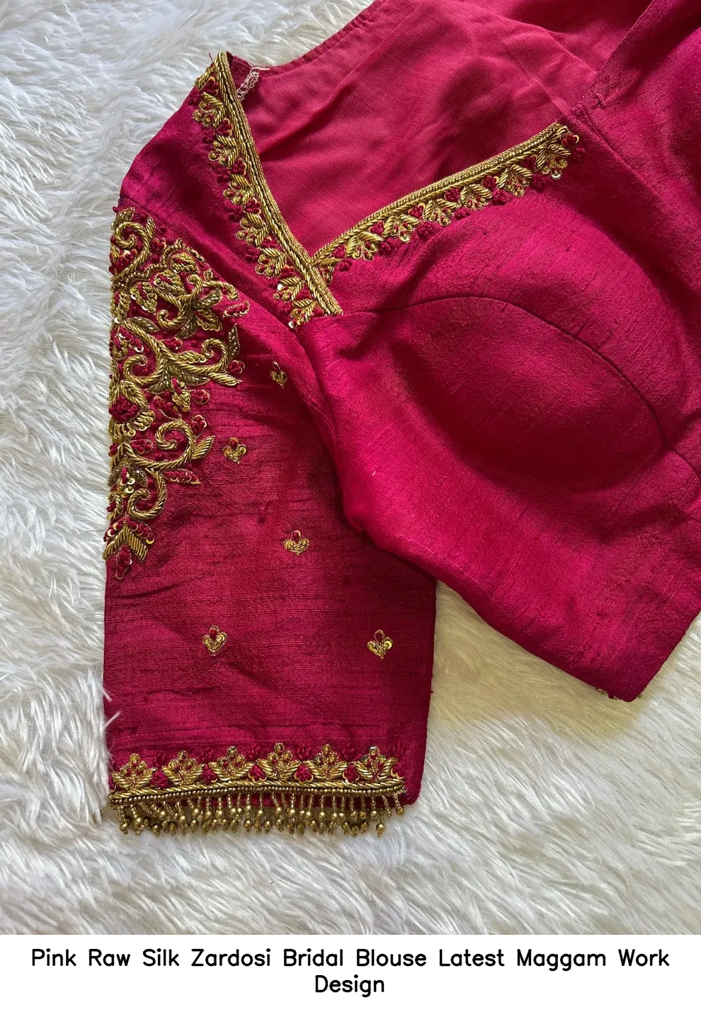 Why Choose Pink Raw Silk Zardosi Bridal Blouse – Latest Maggam Work Design?
