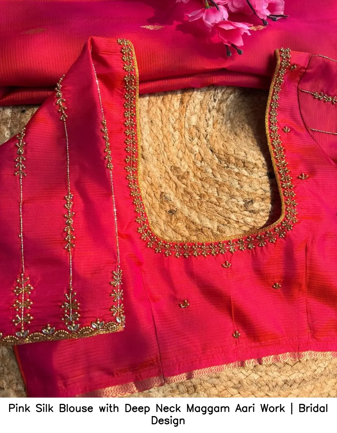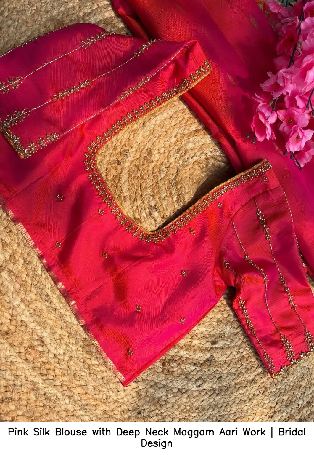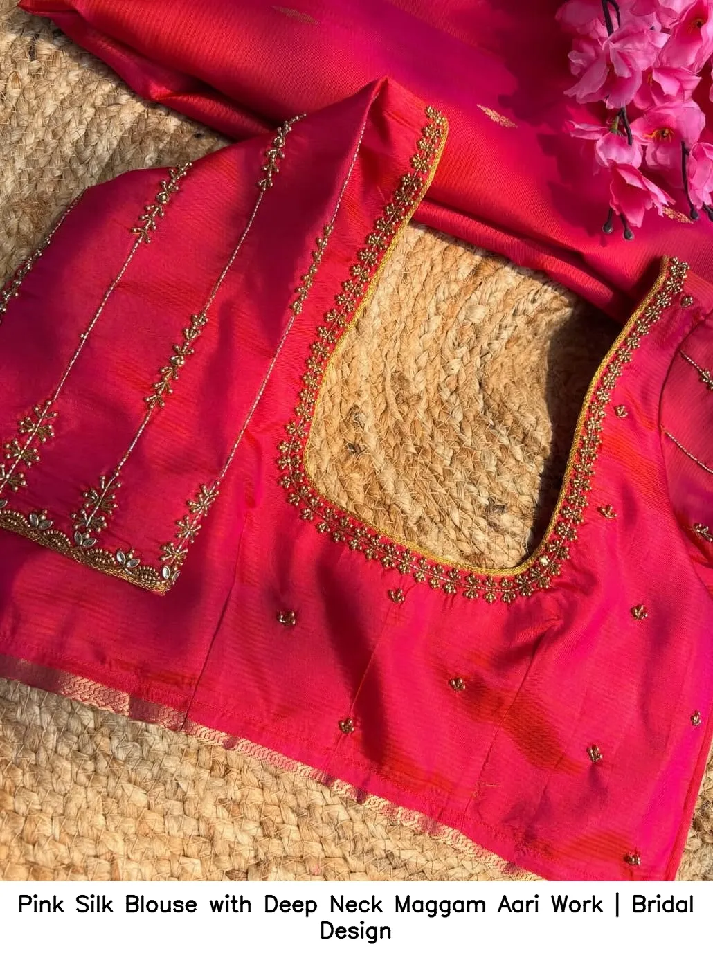 Pink Silk Blouse with Deep Neck Maggam Aari Work | Bridal Design Features and Benefits