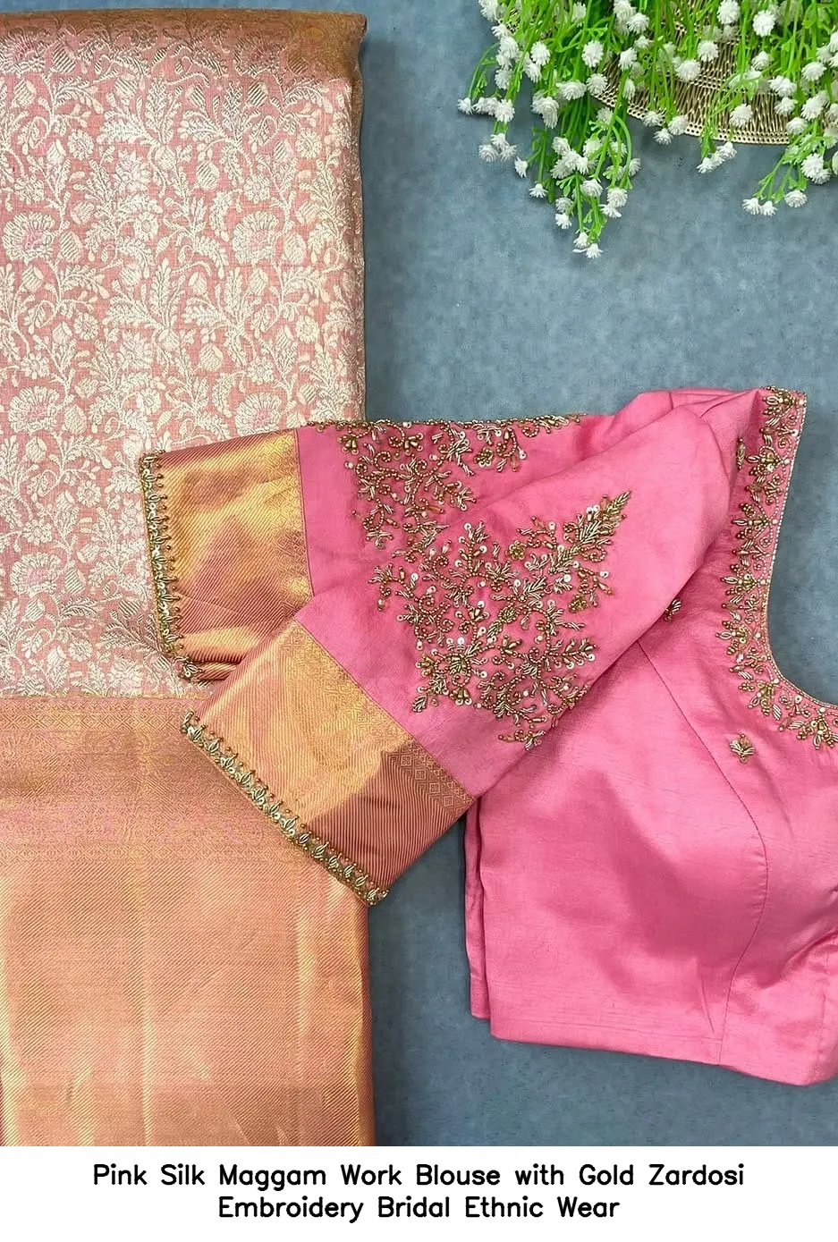 Pink Silk Maggam Work Blouse with Gold Zardosi Embroidery – Bridal Ethnic Wear