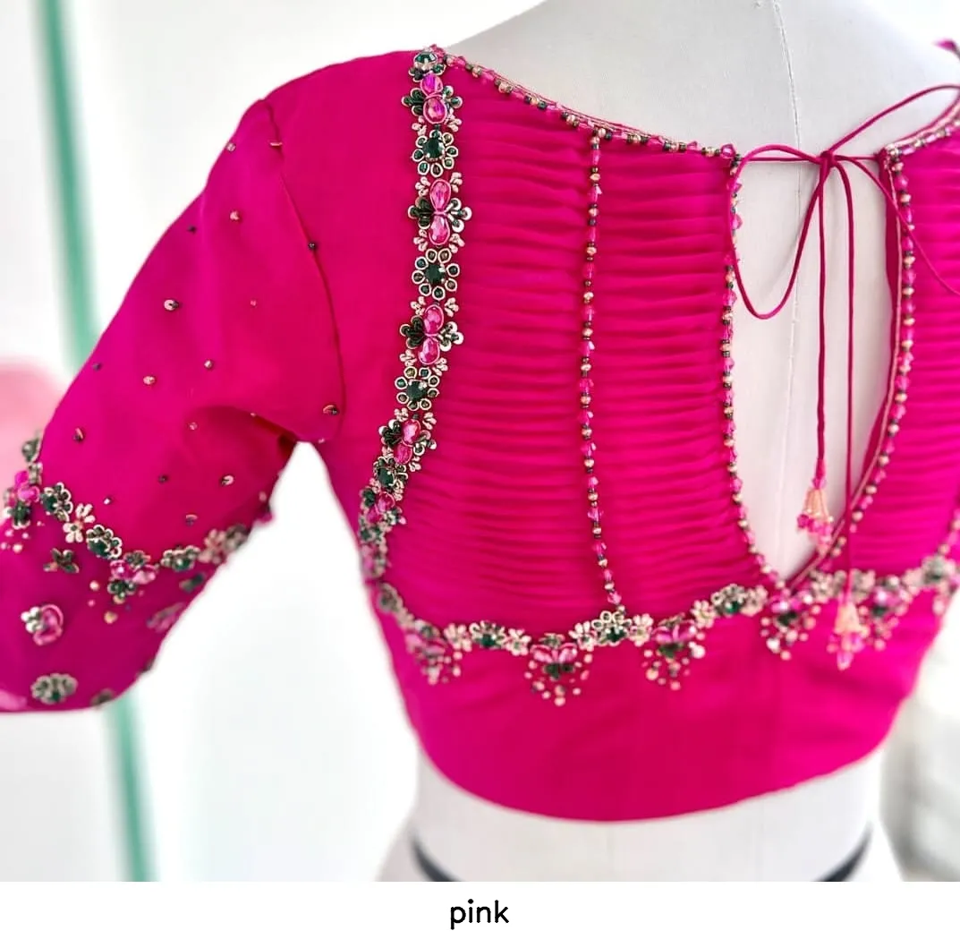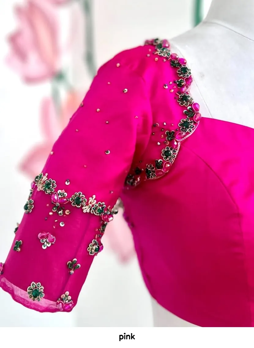 Enhance your ethnic wardrobe with this pink blouse and enjoy its elegance. Also, don’t forget to follow us on Facebook for updates and special offers!
