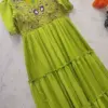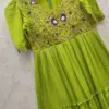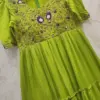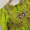 Pista Green Designer Long Frock with Maggam Aari Work Customised Affordable Online stands out for its elegance and affordability. This stunning frock offers a unique blend of style and comfort. Additionally, it is perfect for various occasions, making it a versatile addition to your wardrobe.
