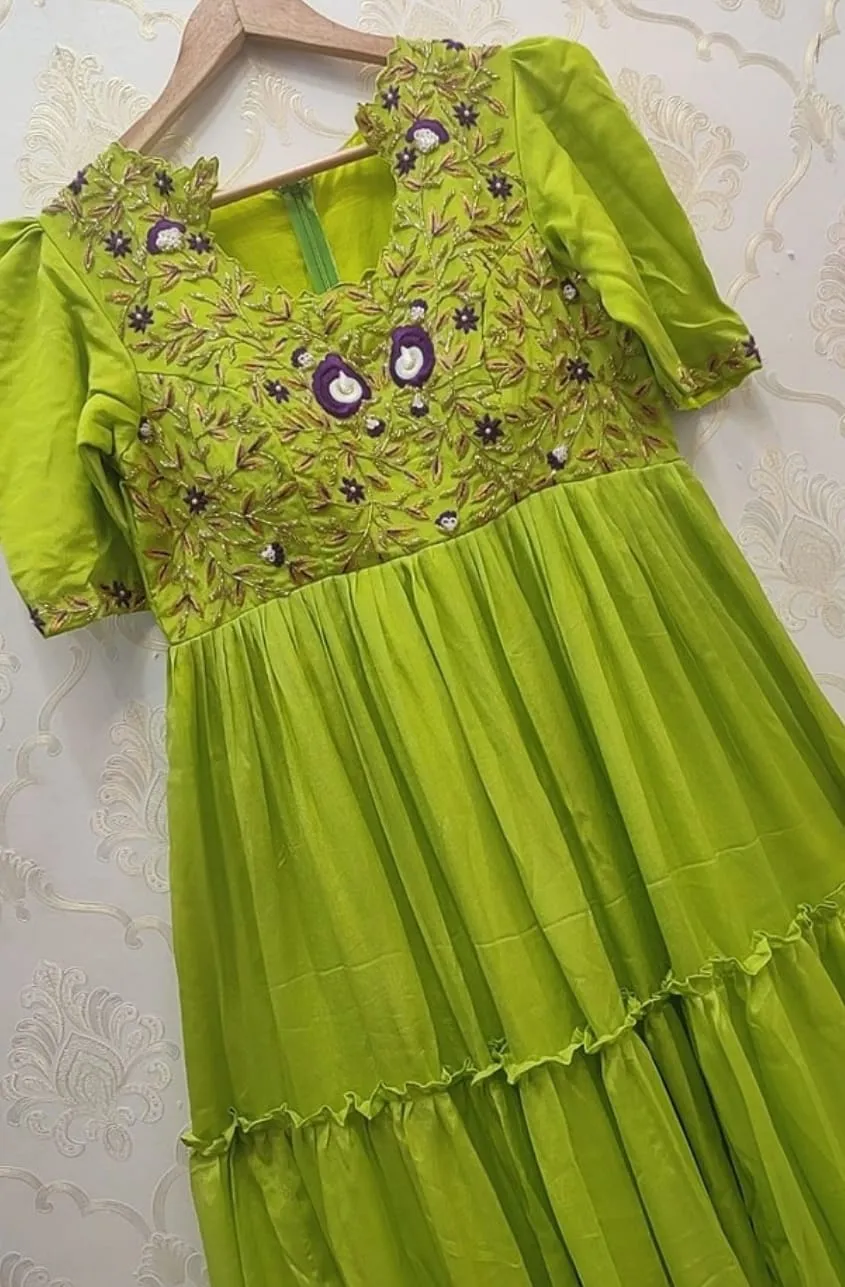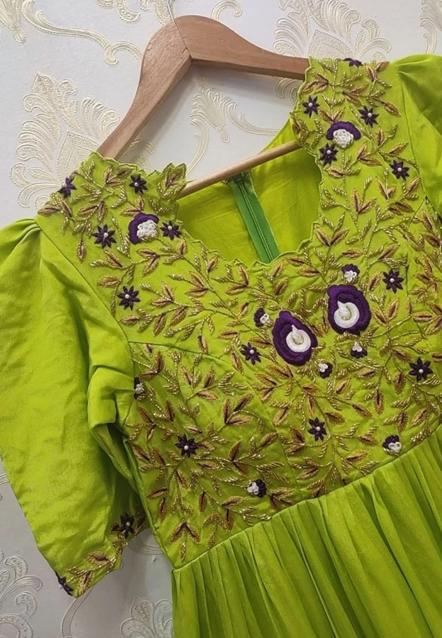 Why Choose Pista Green Designer Long Frock with Maggam Aari Work Customised Affordable Online?