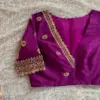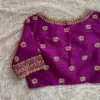 Product Name: Plum Raw Silk Designer Blouse – Scallop Hands Zardosi Maggam Aari Work