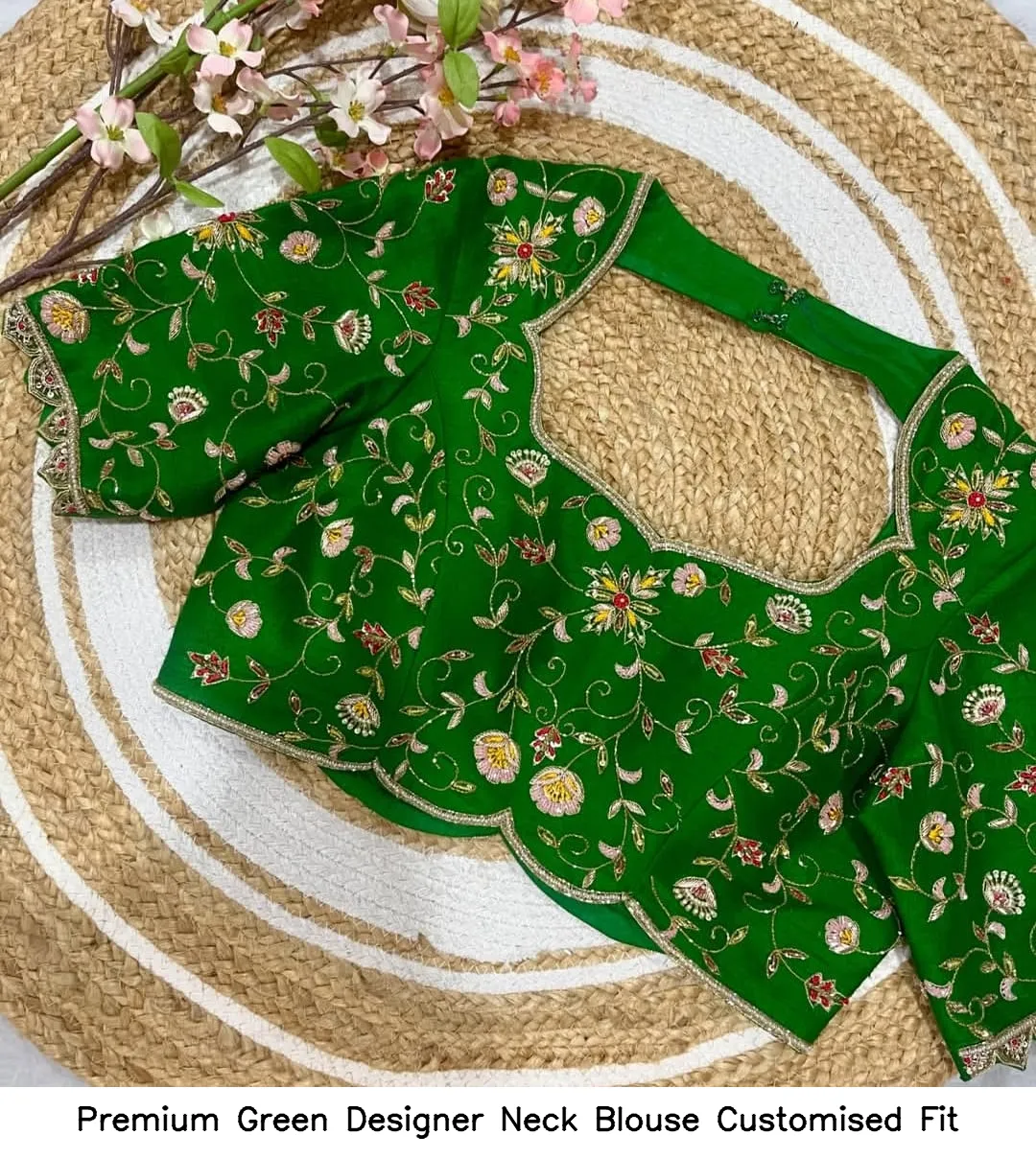 Premium Green Designer Neck Blouse – Customised Fit