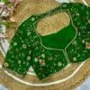 Product Name: Premium Green Designer Neck Blouse – Customised Fit