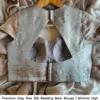 Product Name: Premium Grey Raw Silk Wedding Wear Blouse | Minimal High Neck Maggam Aari Craftsmanship