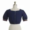 Q: What material is used in the Premium Handcrafted Kutch Work Blouse in Navy Blue Affordable Designer Ethnic Wear?