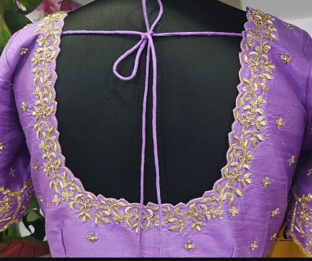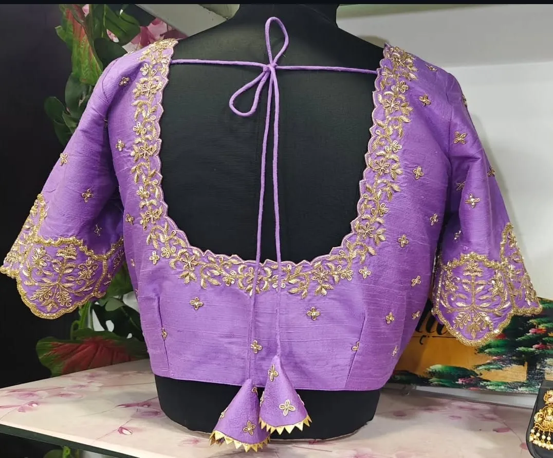 Premium Lavender Zardosi Cutwork Maggam Blouse for Weddings Handcrafted Elegance offers exquisite craftsmanship. This blouse enhances your traditional look effortlessly. Moreover, it is perfect for special occasions and weddings.