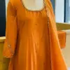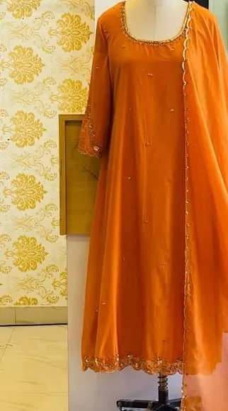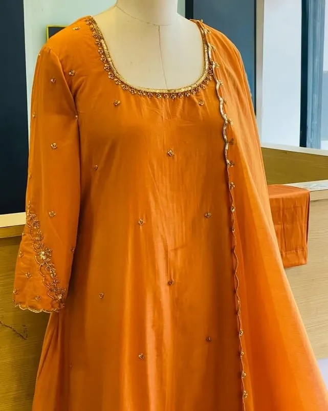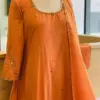 Product Name: Premium Orange Full Sleeve Maggam Work Anarkali Suit HighFashion Statement Wear