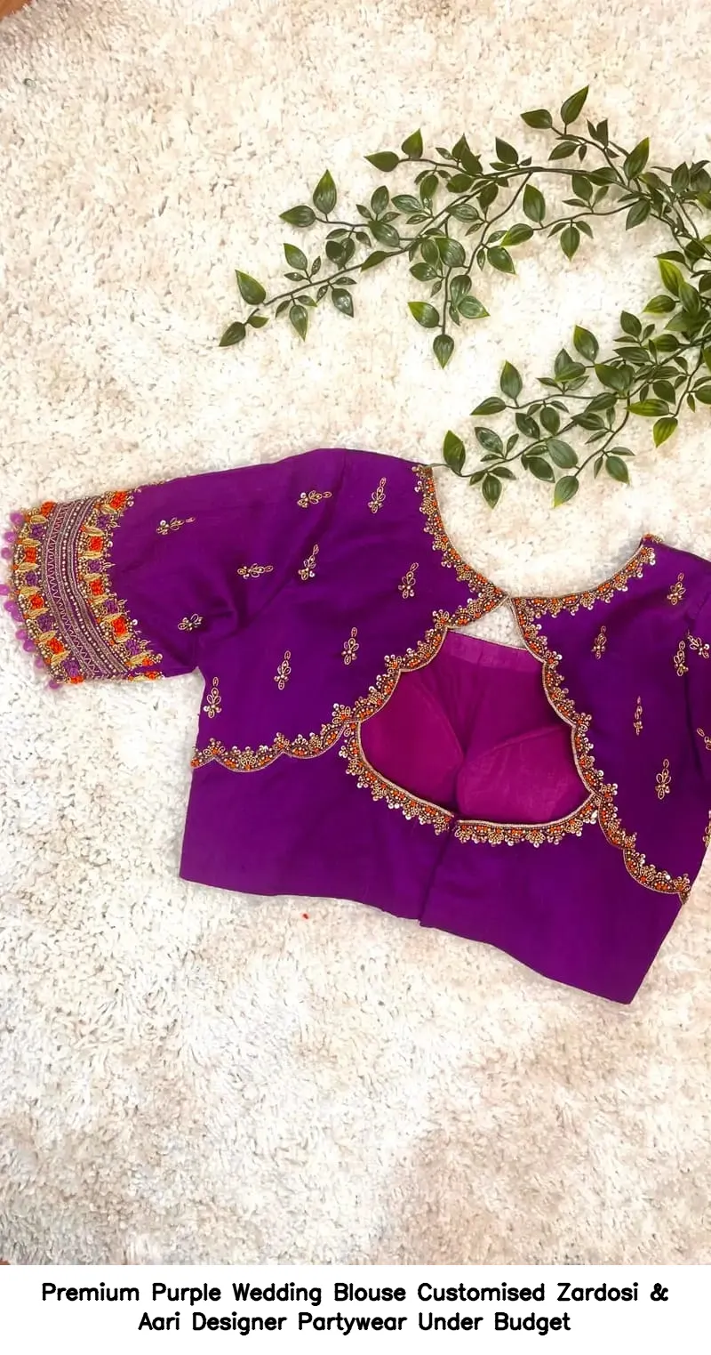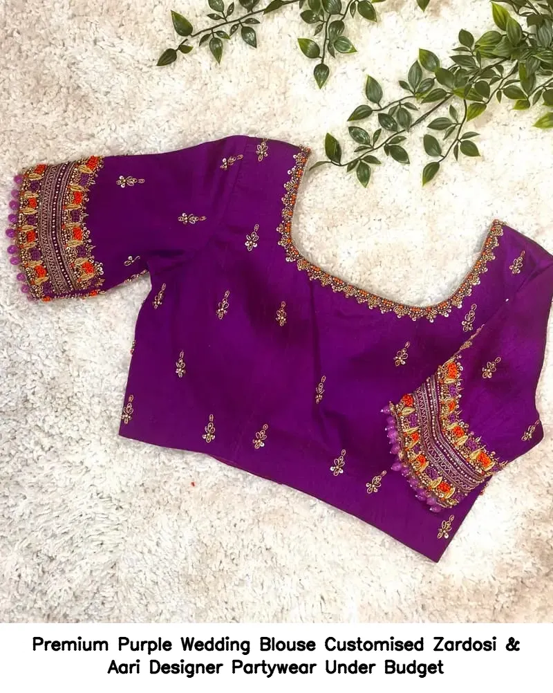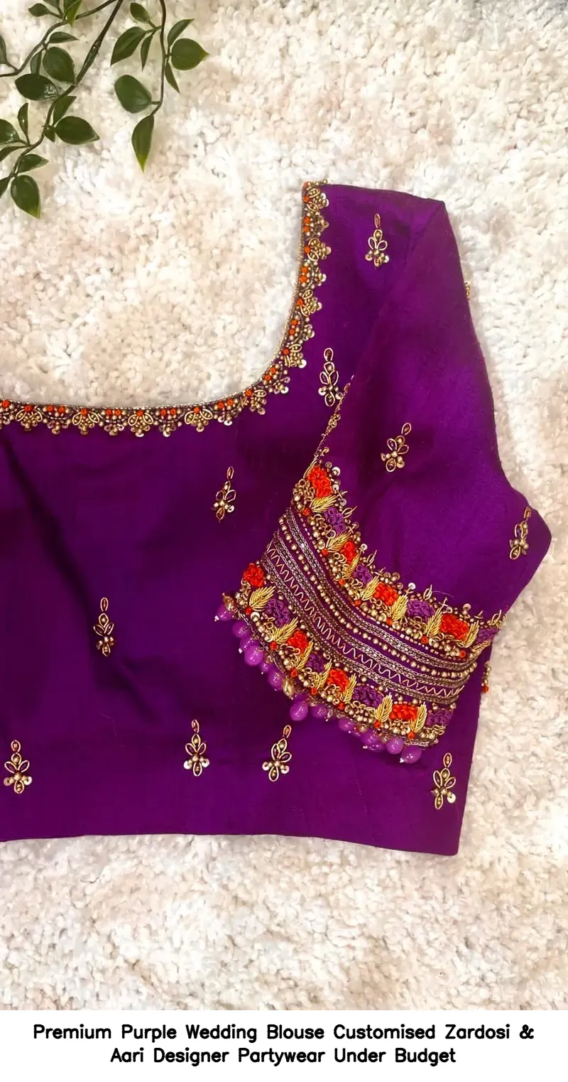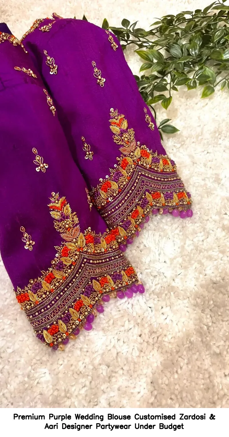 Premium Purple Wedding Blouse – Customised Zardosi & Aari Designer Partywear Under Budget Features and Benefits