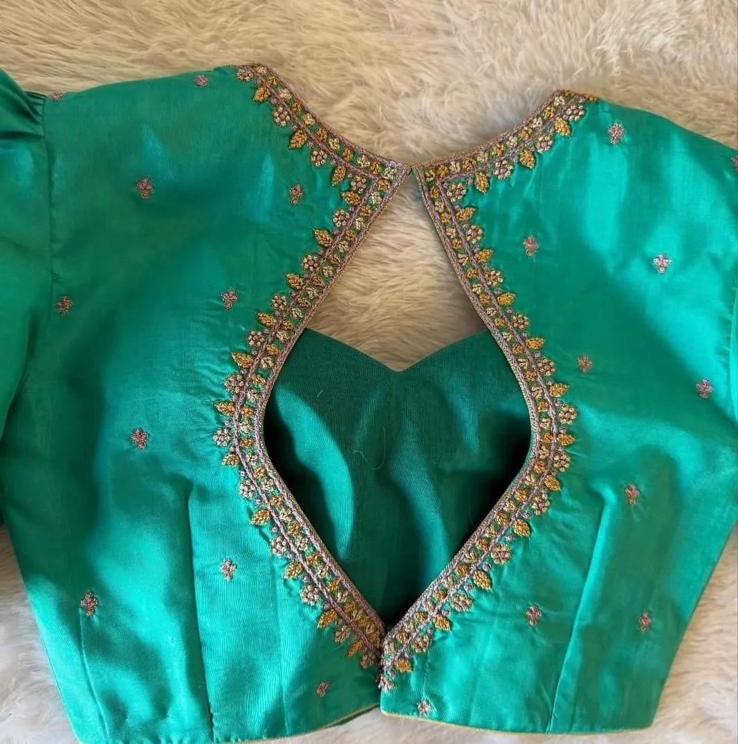 Product Name: Premium Rama Green Designer Maggam Work Blouse Custom Sizes at Best Price Price Per Pc: 2500 INR Fabric Details: Raw Silk Half pattu Size: Xl, XXL, 3XL Colors: Red, Pink,Blue ,Purple, wine ,