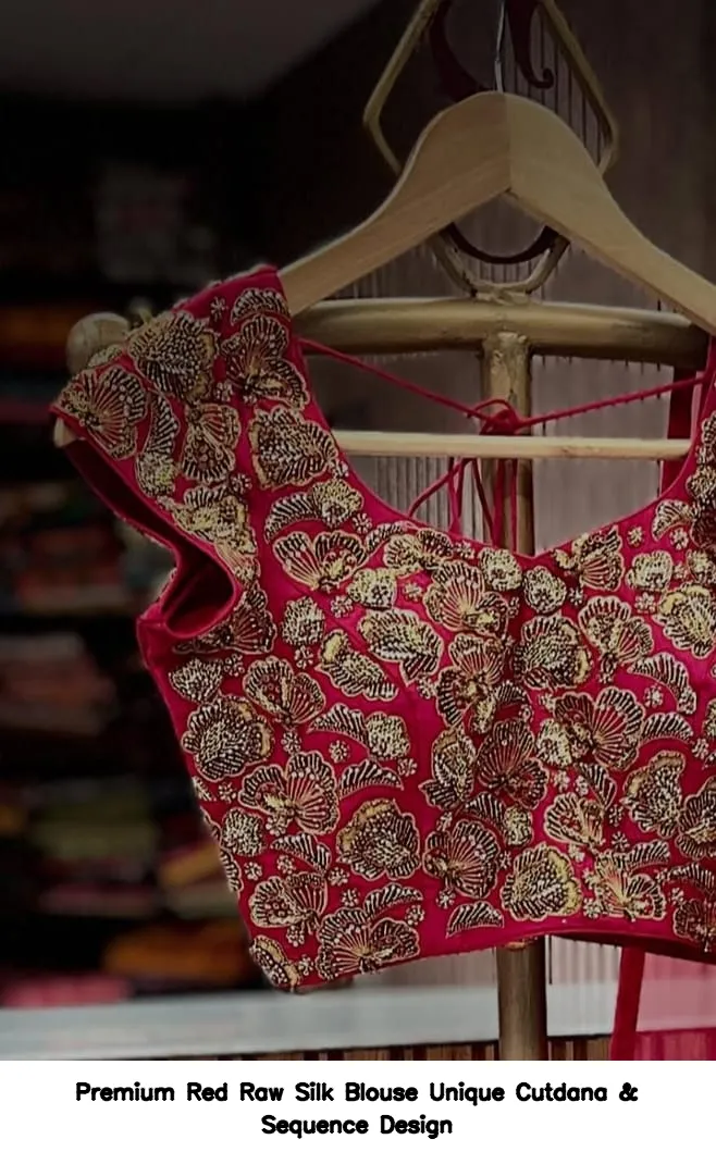 Why Choose Premium Red Raw Silk Blouse – Unique Cutdana & Sequence Design?