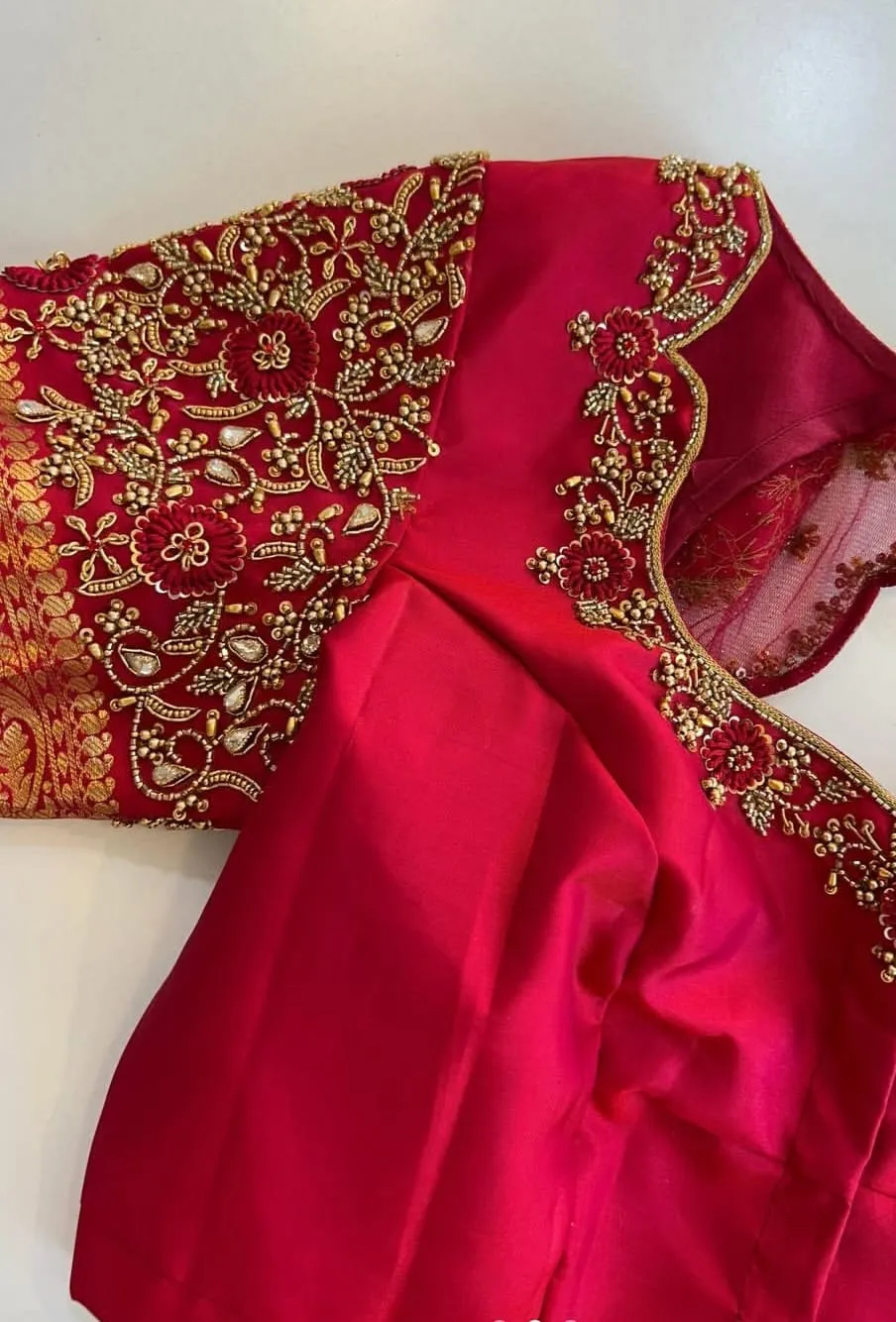 Why Choose Premium Red Zardosi Maggam Work Blouse Online Designer Finish Affordable Price?