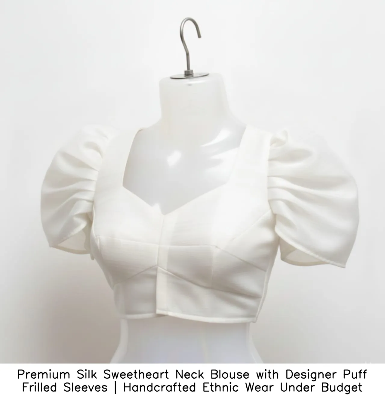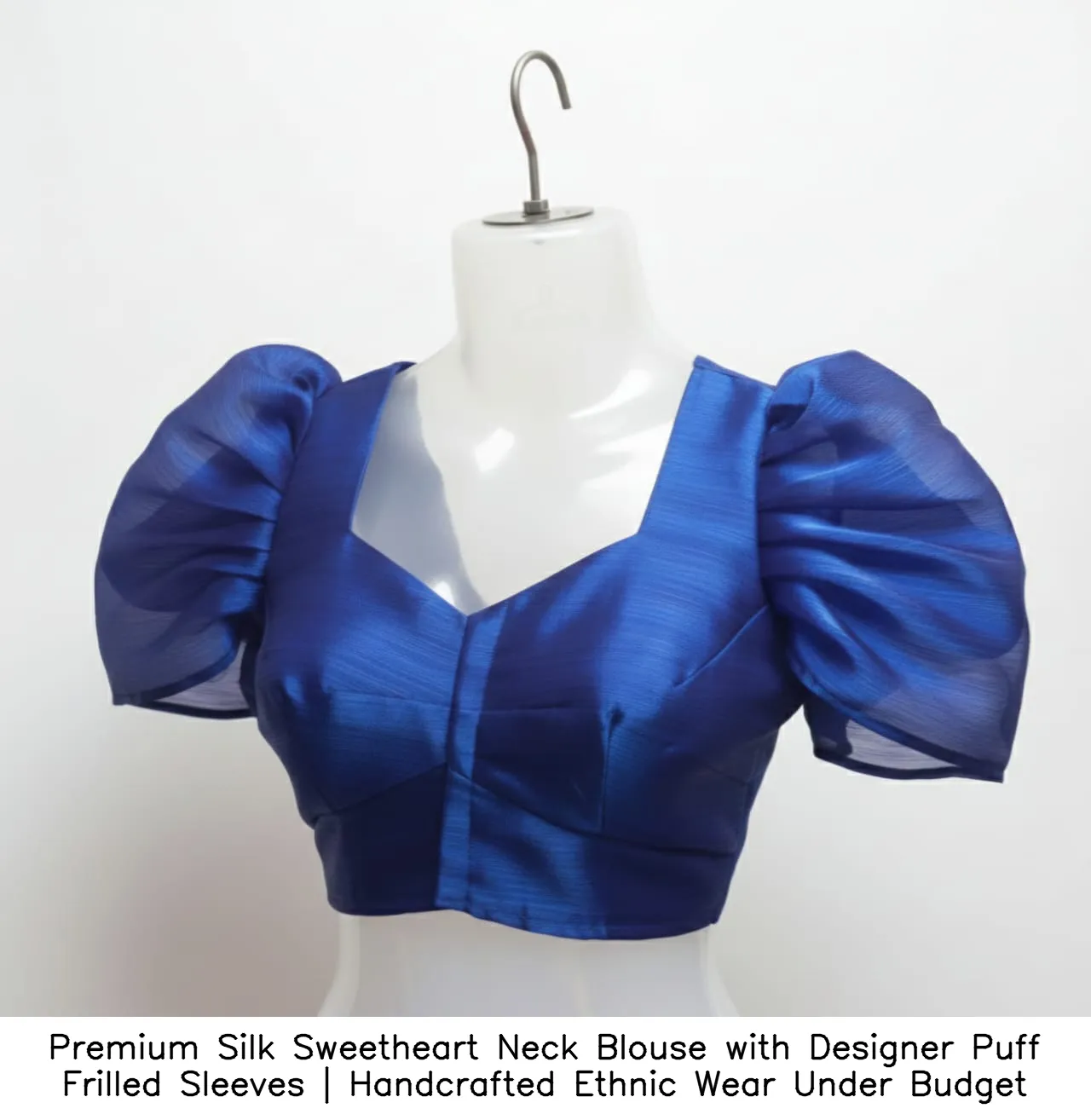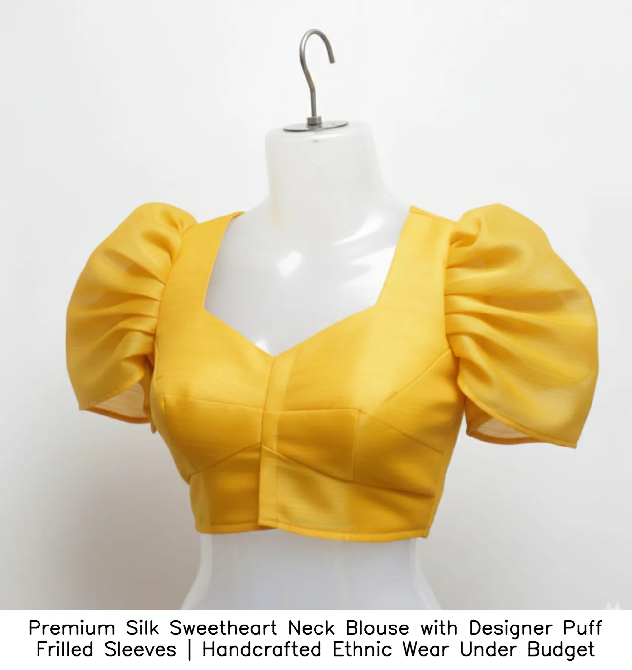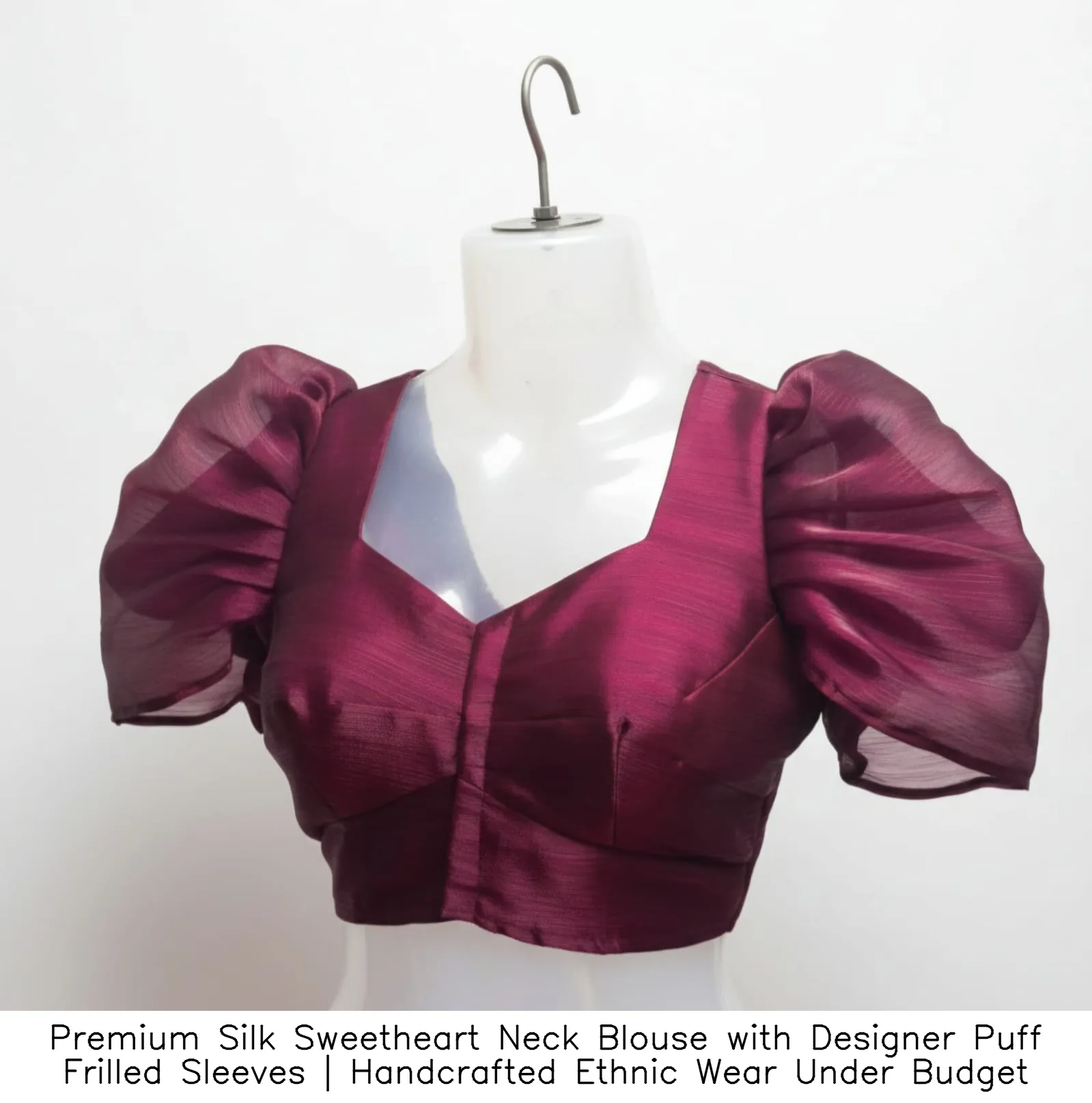 Why Choose Premium Silk Sweetheart Neck Blouse with Designer Puff Frilled Sleeves | Handcrafted Ethnic Wear Under Budget?