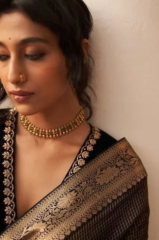 Why Choose V-Neck Black Zardosi Maggam Work Blouse Elegant Party Wear Under 5K Custom Fit Ready?