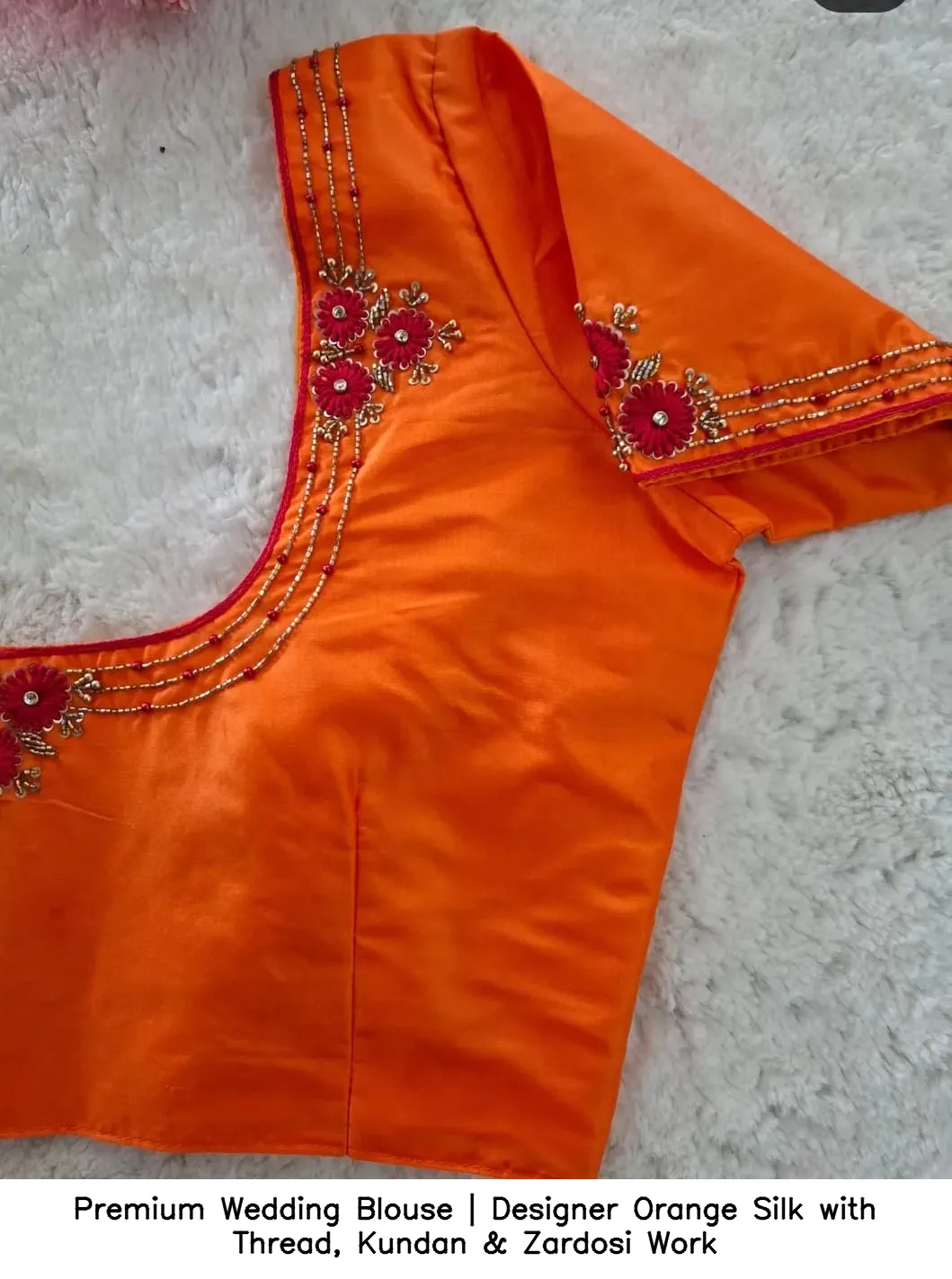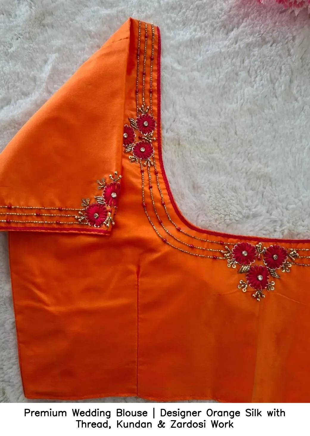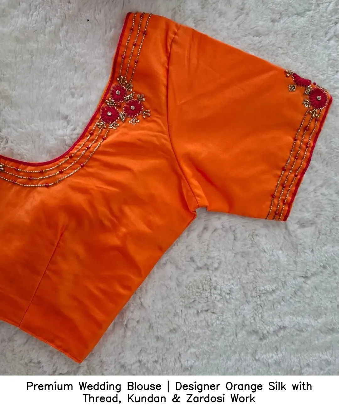Why Choose Premium Wedding Blouse | Designer Orange Silk with Thread, Kundan & Zardosi Work?