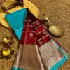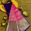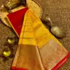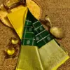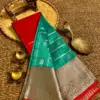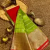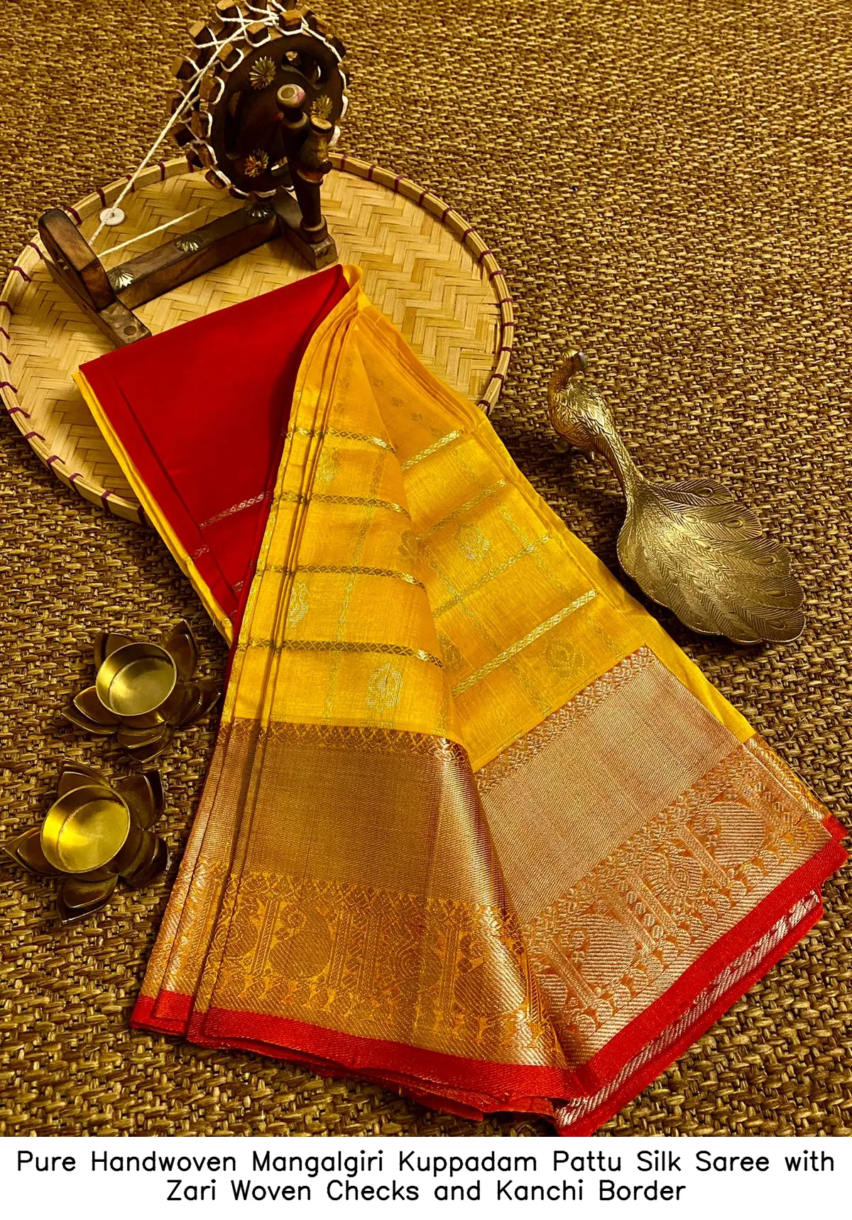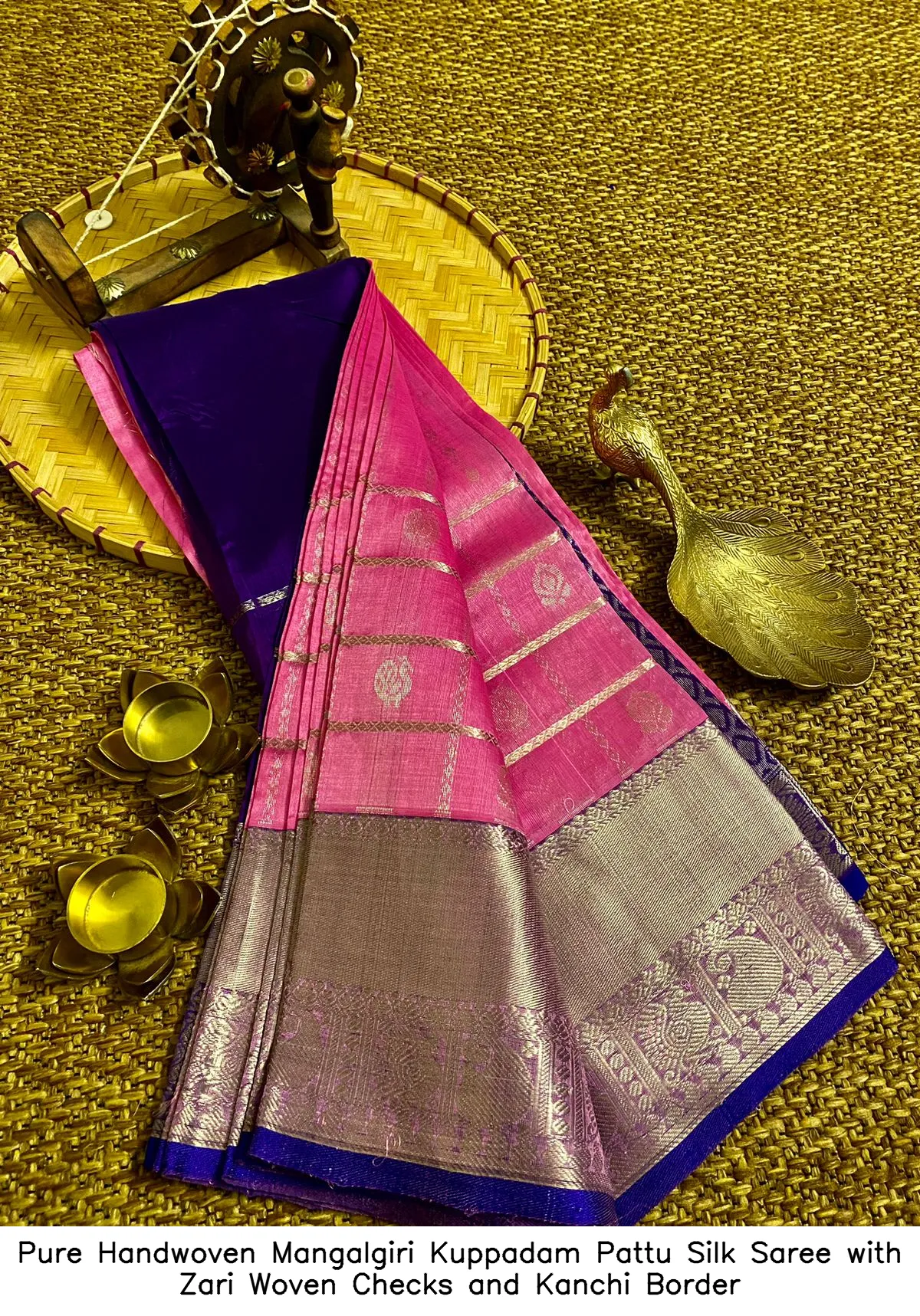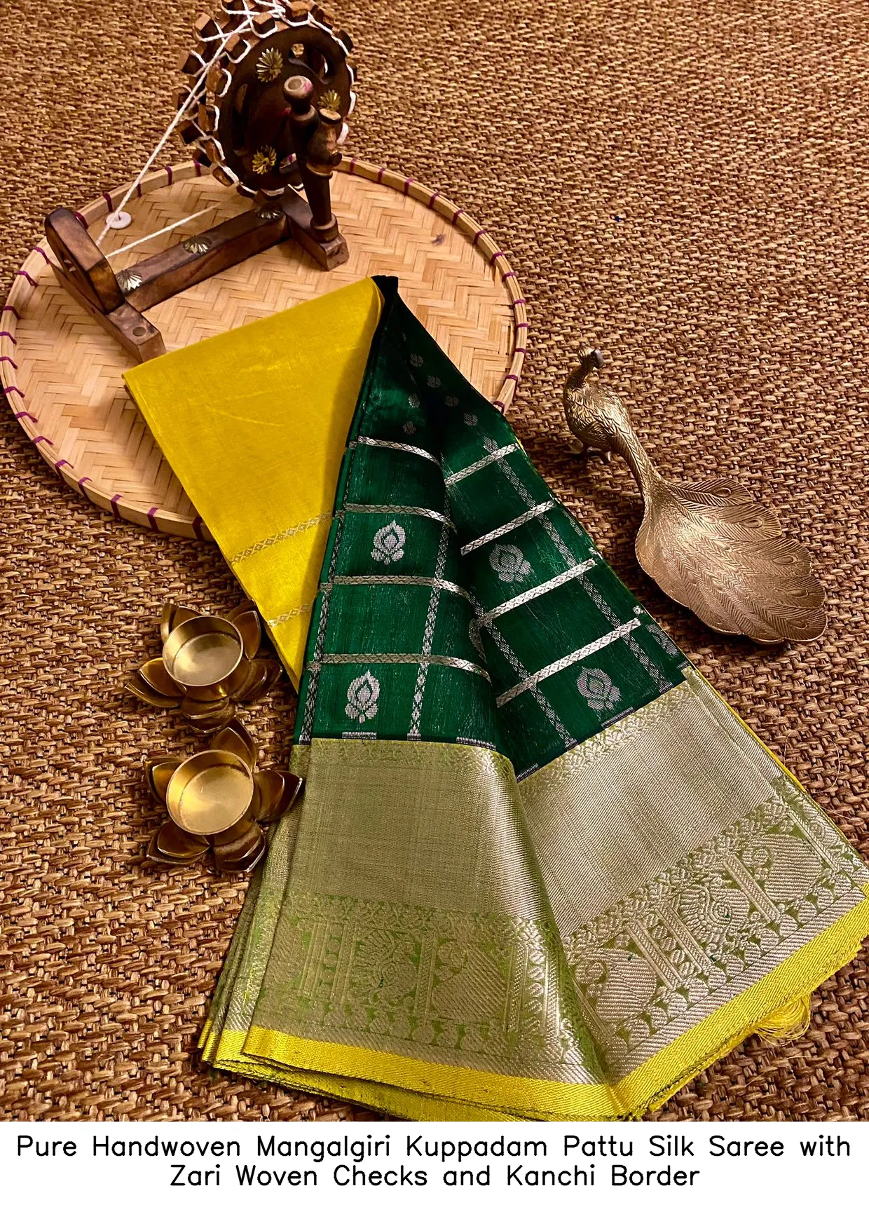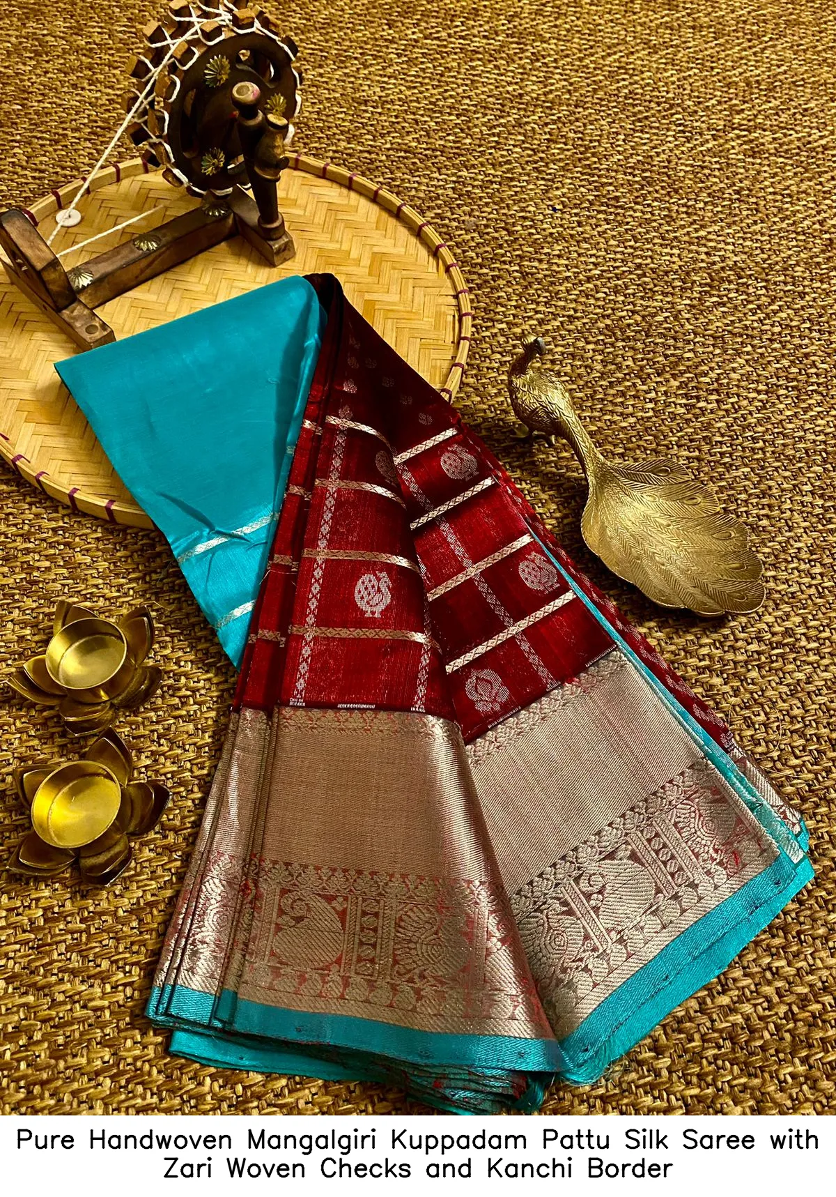 Product Name: Pure Handwoven Mangalgiri Kuppadam Pattu Silk Saree with Zari Woven Checks and Kanchi Border