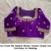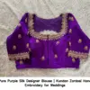Pure Purple Silk Designer Blouse | Kundan Zardosi Hand Embroidery for Weddings