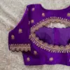 Product Name: Pure Purple Silk Designer Blouse | Kundan Zardosi Hand Embroidery for Weddings