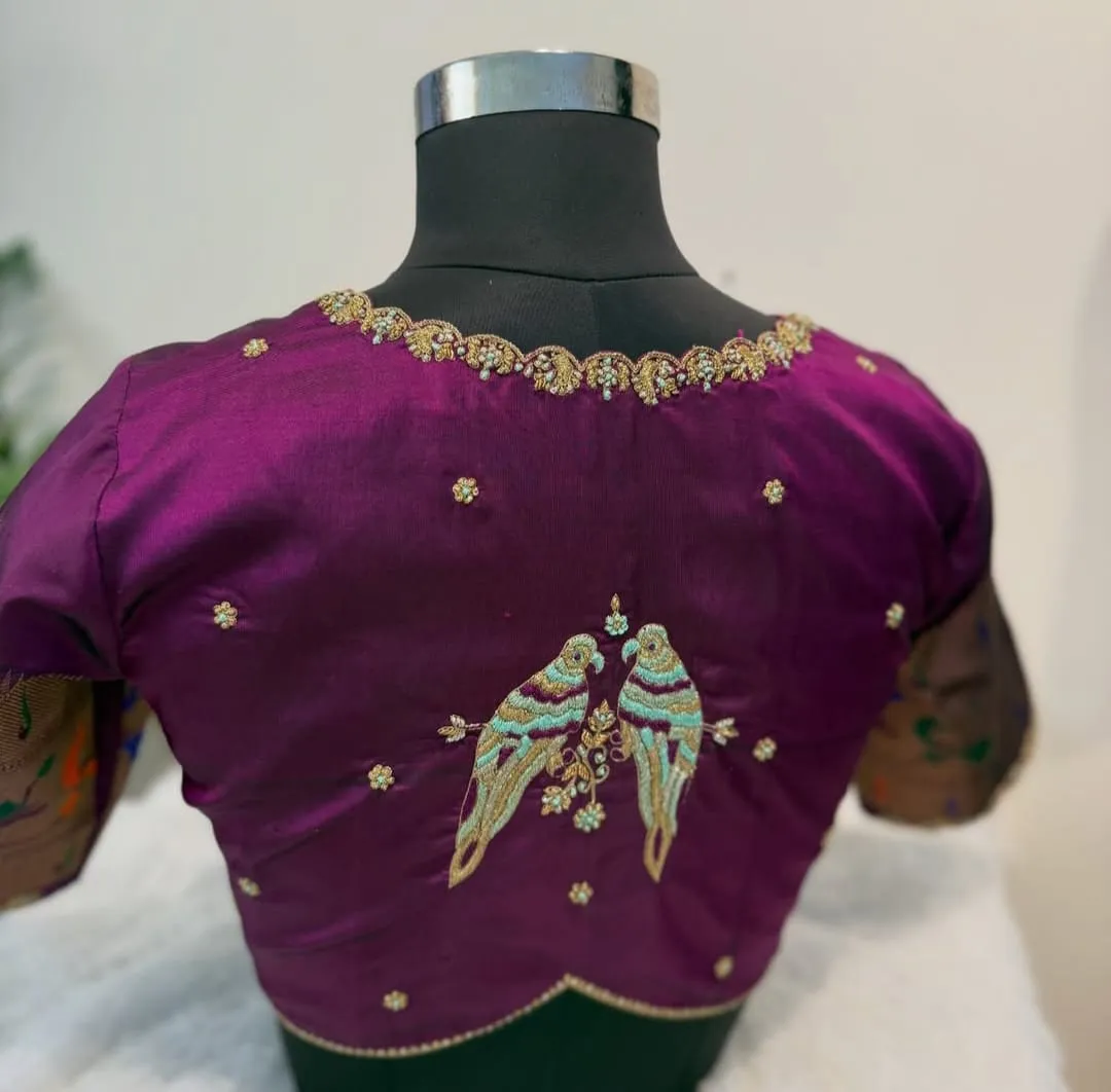 Product Name: Purple High Neck Maggam Work Blouse -Latest Bird Design Patterns