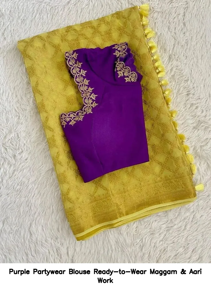Purple Partywear Blouse – Ready-to-Wear Maggam & Aari Work is the perfect choice for your festive wardrobe. This exquisite blouse combines elegance with comfort. Moreover, it features stunning craftsmanship that elevates your look for any occasion.