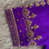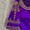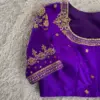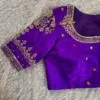 Product Name: Purple Premium Raw Silk Wedding Blouse – High Neck Zardosi & Maggam Aari Work, Designer Party Wear Under Budget