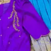 Product Name: ​​Purple Silk Maggam Work Blouse with Scalloped Sleeves and Gold Zardosi