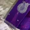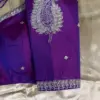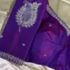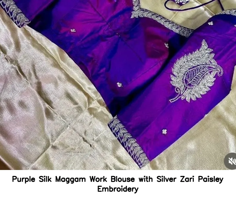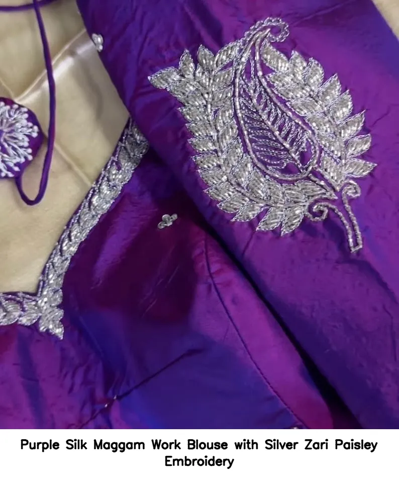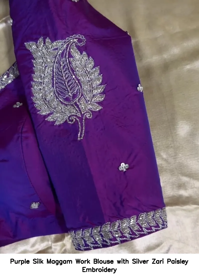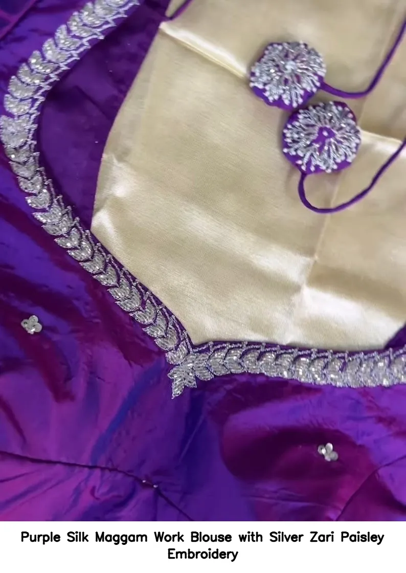 Product Name: ​​​​​​​Purple Silk Maggam Work Blouse with Silver Zari Paisley Embroidery