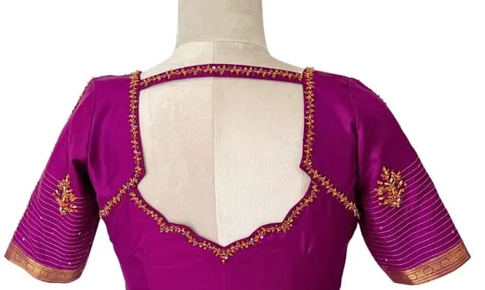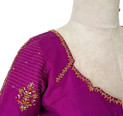 Product Name: PurplePink High Neck Maggam Work Designer Blouse Chic Trendy & Under Budget