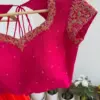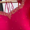 Product Name: Radiant Red Layered Chiffon Lehenga – Hot Pink Hand-Embroidered Cut-Out Blouse & Ombre Dupatta