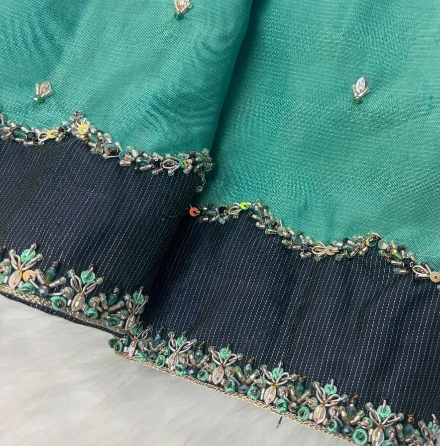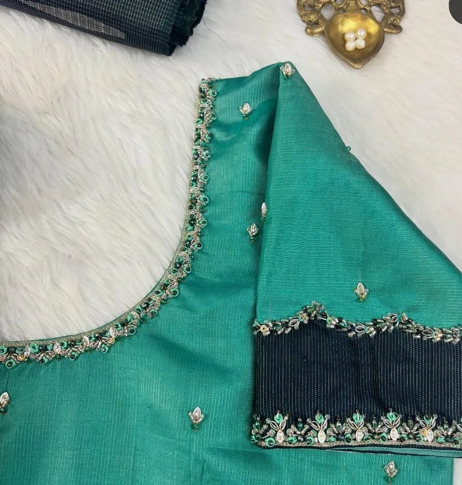 Why Choose Rama Green Designer Maggam Aari Work Saree Blouse Simple Elegant Party Wear Buy Online?