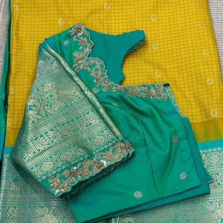 Product Name: Rama Green Party Wear Saree with Grand Maggam Work Blouse Custom Sizes Best Price Online