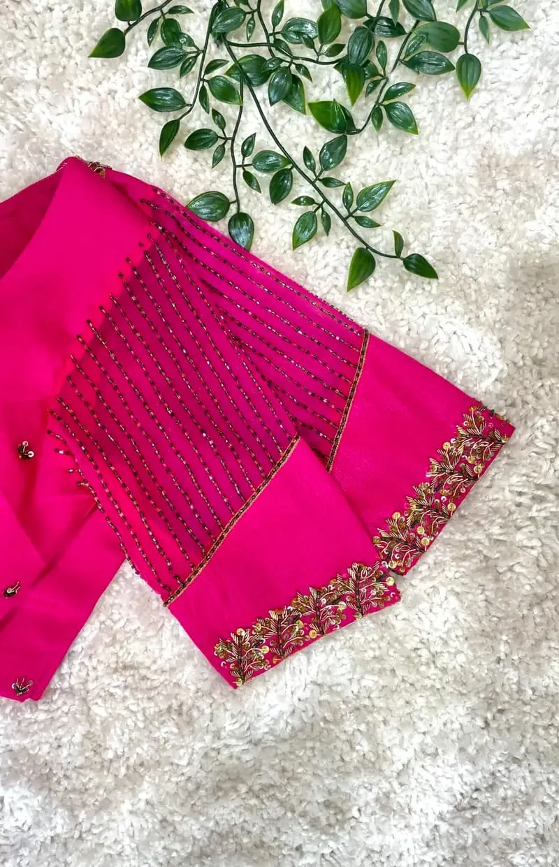 Rani Pink Designer Maggam Work Blouse Premium Bridal Handcrafted Aari Zardosi is a stunning choice for any bride. This blouse combines exquisite craftsmanship with vibrant colors, enhancing your bridal attire. Moreover, the unique maggam work adds a touch of luxury. Brides love this style for its elegance and comfort.