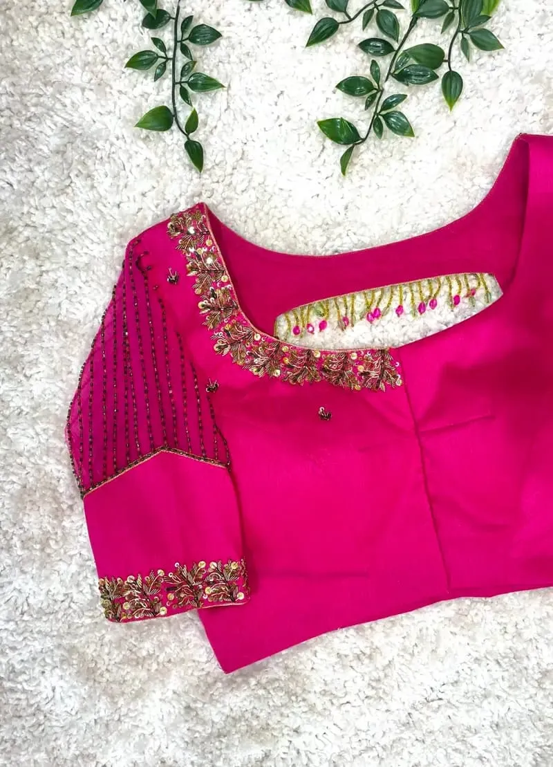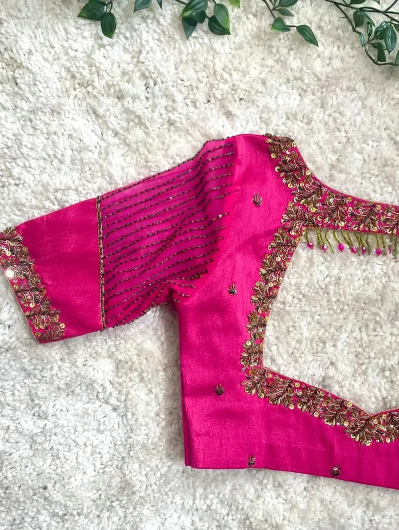 Rani Pink Designer Maggam Work Blouse Premium Bridal Handcrafted Aari Zardosi Features and Benefits