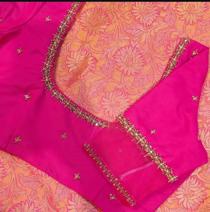 Why Choose Rani Pink Net Zardosi Designer Blouse Latest Maggam Work Beauty at a Budget Price?