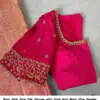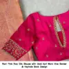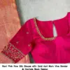 Product Name: Rani Pink Raw Silk Blouse with Gold Aari Work Vine Border & Keyhole Back Design
