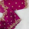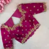 The Rani Pink Silk Blouse featuring Designer Triangular Back & Scalloped Embroidery – Handcrafted Ethnic Wea is priced at 6000 INR. It is a half pattu blouse from the renowned brand Sm Designs. Available colors include Red, Pink, Blue, Purple, and Wine. Sizes range from XL to 3XL.