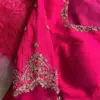 Product Name: Rani Pink Silk Blouse with Hand-Embroidered Bridal Figure Work | Designer Pink Maggam Work Blouse