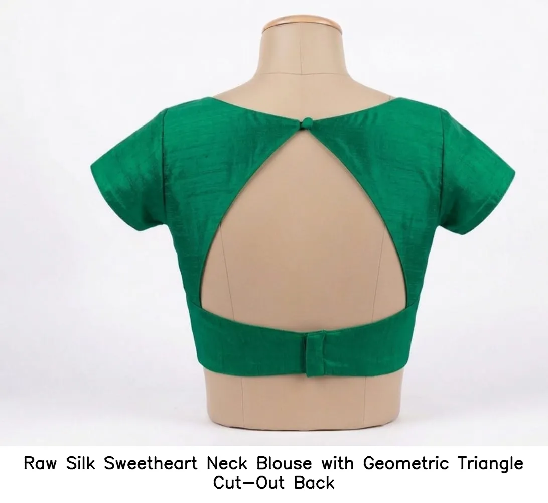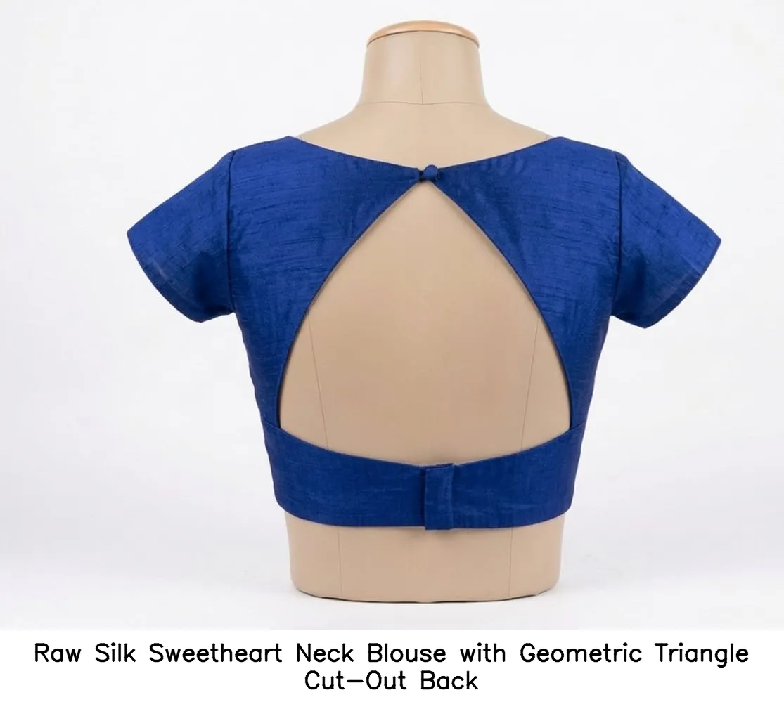 Why Choose the Raw Silk Sweetheart Neck Blouse with Geometric Triangle Cut-Out Back?