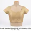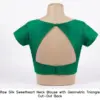 The Raw Silk Sweetheart Neck Blouse with Geometric Triangle Cut-Out Back is designed by the renowned brand Sm Designs. Priced at just 650 INR, this half pattu blouse combines luxury with affordability.
